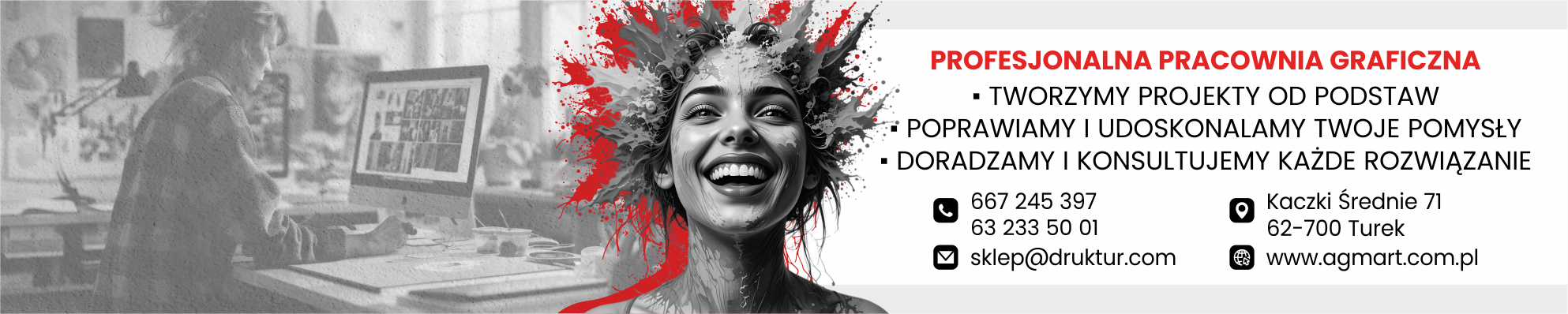agmART to drukarnia reklamowa, która patrzy na projekt szerzej niż przez pryzmat samego wydruku. Dla nas liczy się cały proces - od pierwszej rozmowy i analizy potrzeb, przez projekt graficzny i dobór technologii, aż po precyzyjne wykonanie i terminową realizację. Każdy etap ma znaczenie, bo to suma detali decyduje o końcowym efekcie.