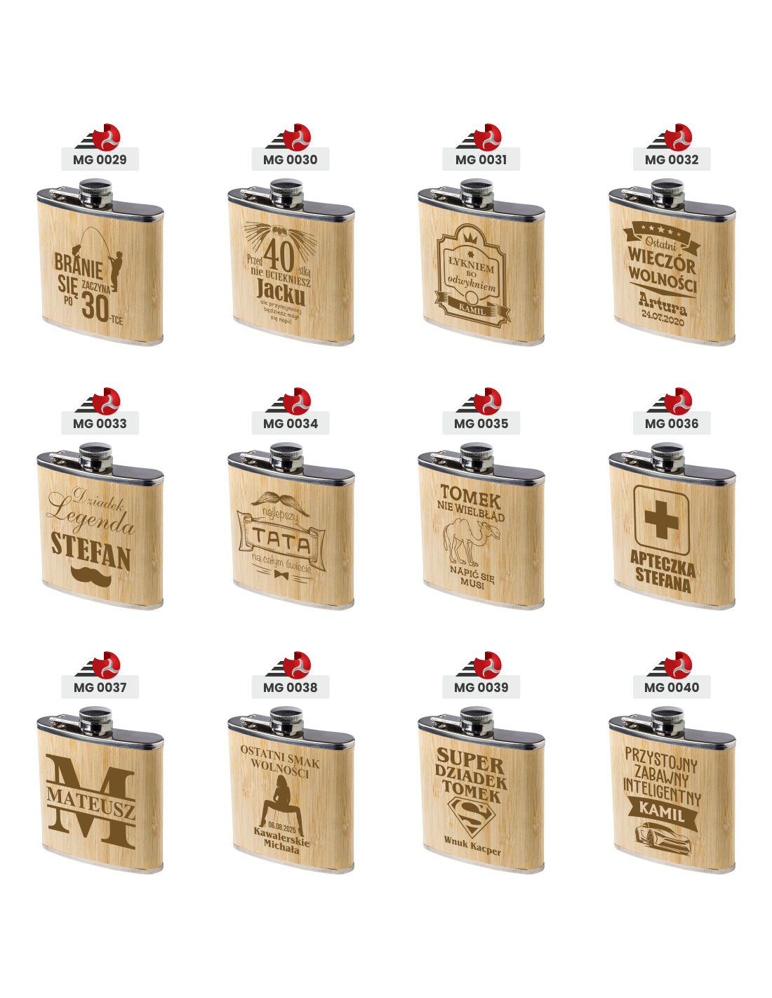 • Personalizacja na grawerze – wykonujemy dowolny tekst, inicjały, imię, datę lub prostą grafikę. Każda piersiówka staje się dzięki temu niepowtarzalna.