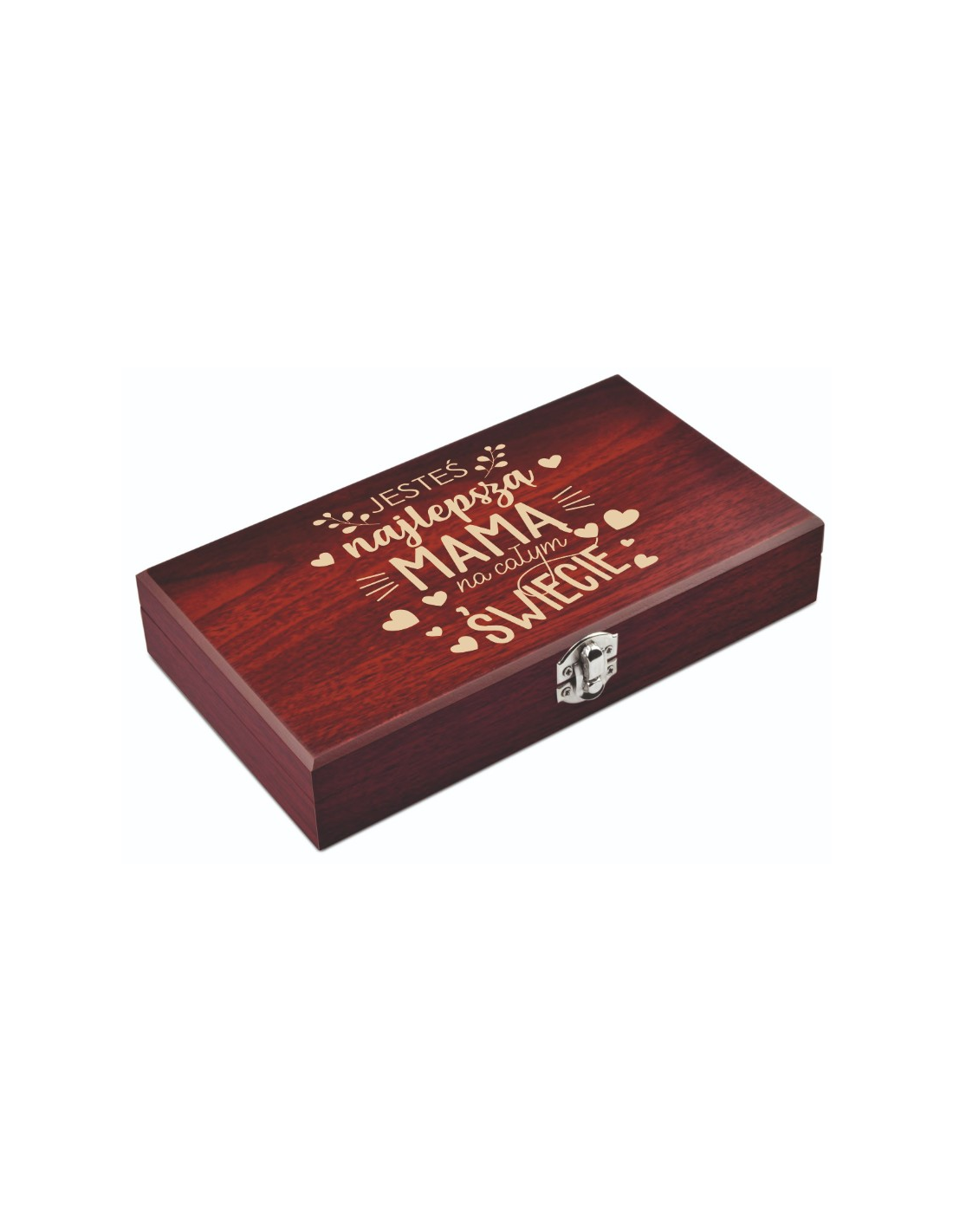 Przedmiot zakupu: elegancki zestaw umożliwiający cieszyć się każdą kropelką winnego Ilość: 1 szt. znakowanie: trwały i elegancki grawer Pełna personalizacja – możliwość wykonania dowolnego napisu lub grafiki Specyfikacja: Wymiary: 240 x 145 x 50 mm Materiał: Drewno, Metal Zestaw zawiera korkociągu, 2 zatyczek (jedna z funkcją nalewaka), obrączki na szyjkę butelki zabezpieczającej przed kapaniem Jak personalizować produkt ? Po zakupie wystarczy podać treść graweru: wzór, imię, inicjały, datę lub krótką dedykację. Zajmiemy się resztą, aby piersiówka była gotowa do wręczenia lub użytkowania. Po zakupie podaj: numer wybranego wzoru (jeśli dotyczy), tekst, który ma znaleźć się na tabliczce, dodatkowe informacje dotyczące wyglądu (np. grafika, układ).