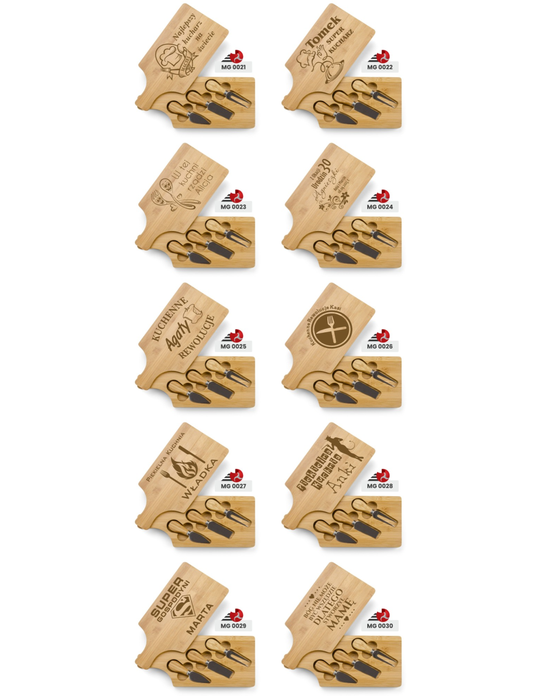 • Personalizacja na grawerze – wykonujemy dowolny tekst, inicjały, imię, datę lub prostą grafikę. Każdy zestaw staje się dzięki temu niepowtarzalny.