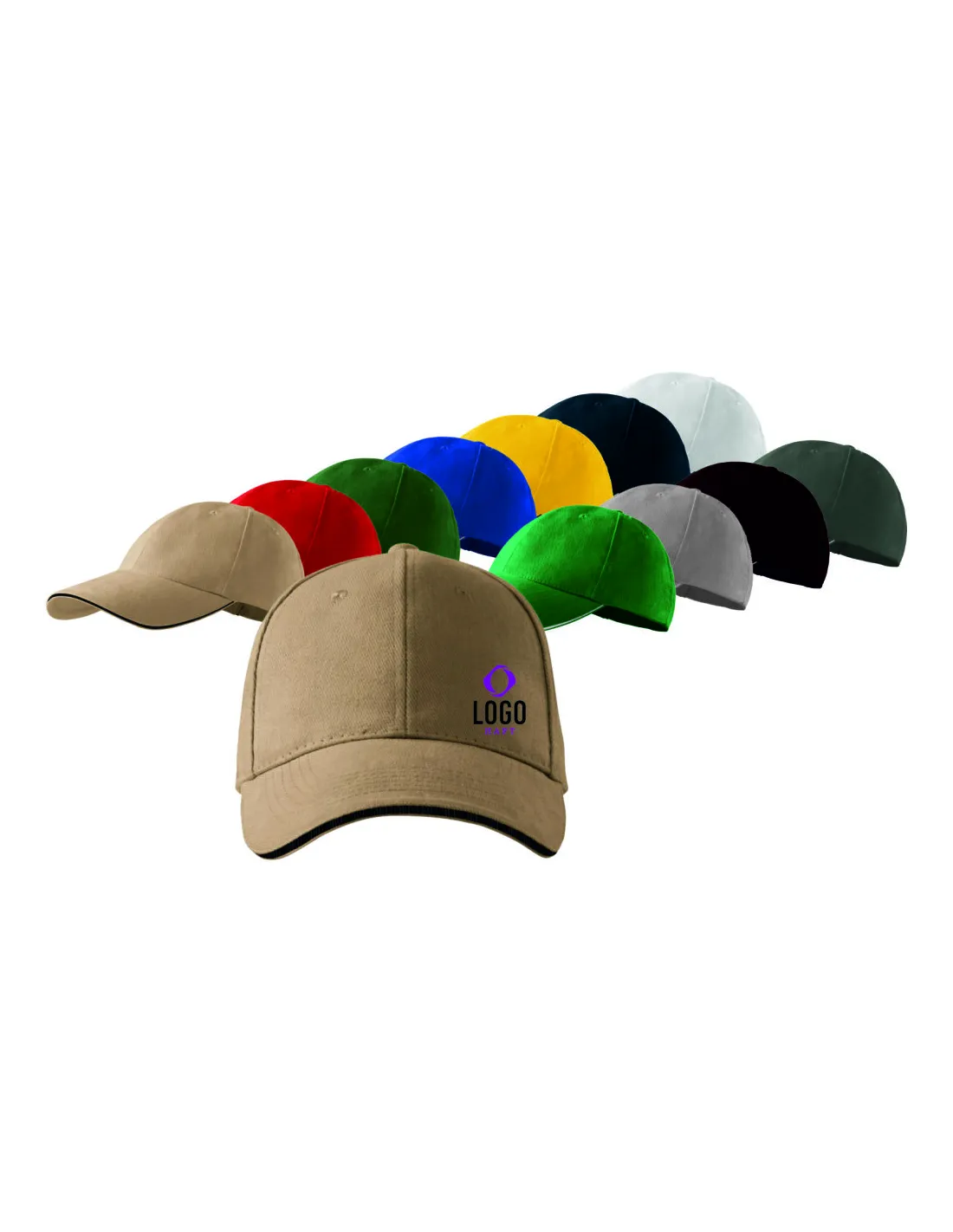 Dostępne kolory czapek :biały, czarny, granatowy, żółty, chabrowy, butelkowa zieleń, czerwony, piaskowy, szary, kakaowy, ciemny khaki