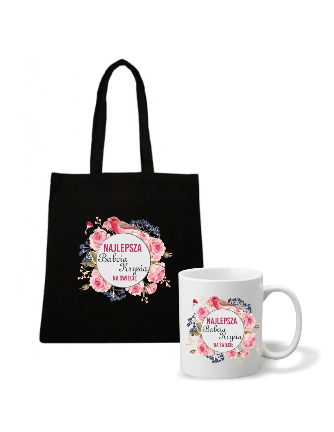 Eko torba kubek Prezent na Dzień Babci i Dziadka zestaw 1+1 z nadrukiem najlepsza babcia imię na świecie