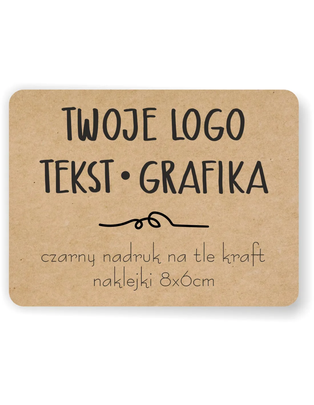 Naklejki ETYKIETY REKLAMOWE eko kraft twoje LOGO dowolny nadruk 200szt 8x6