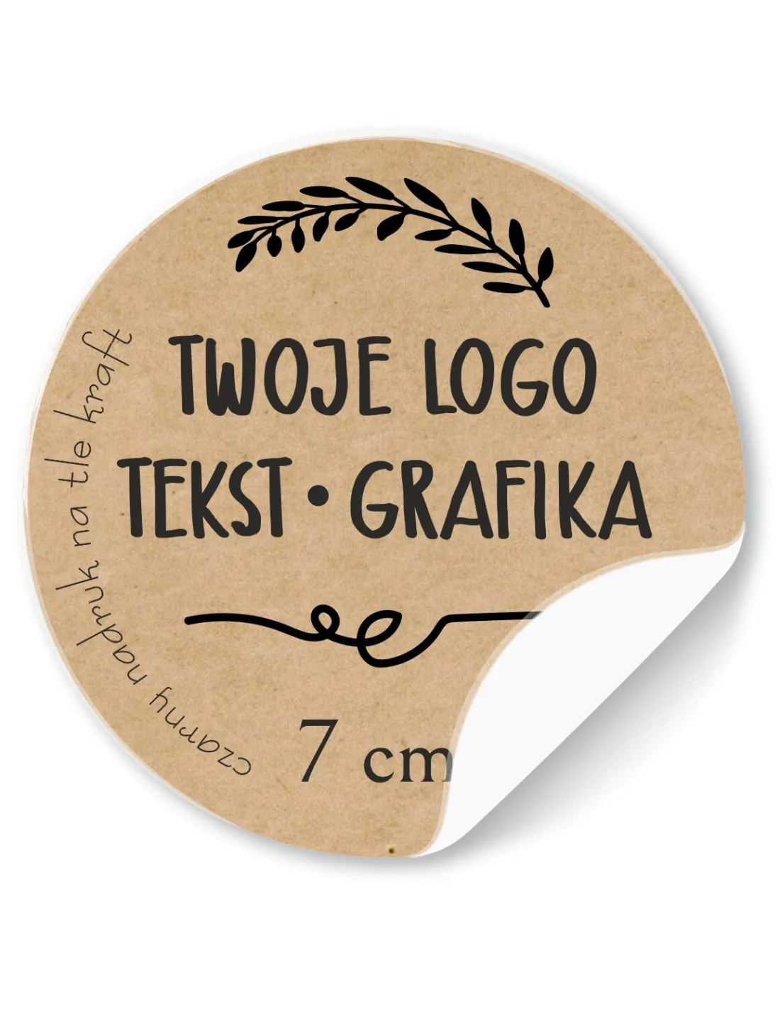 Naklejki ETYKIETY REKLAMOWE eko kraft twój dowolny nadruk LOGO 200 szt 7 cm