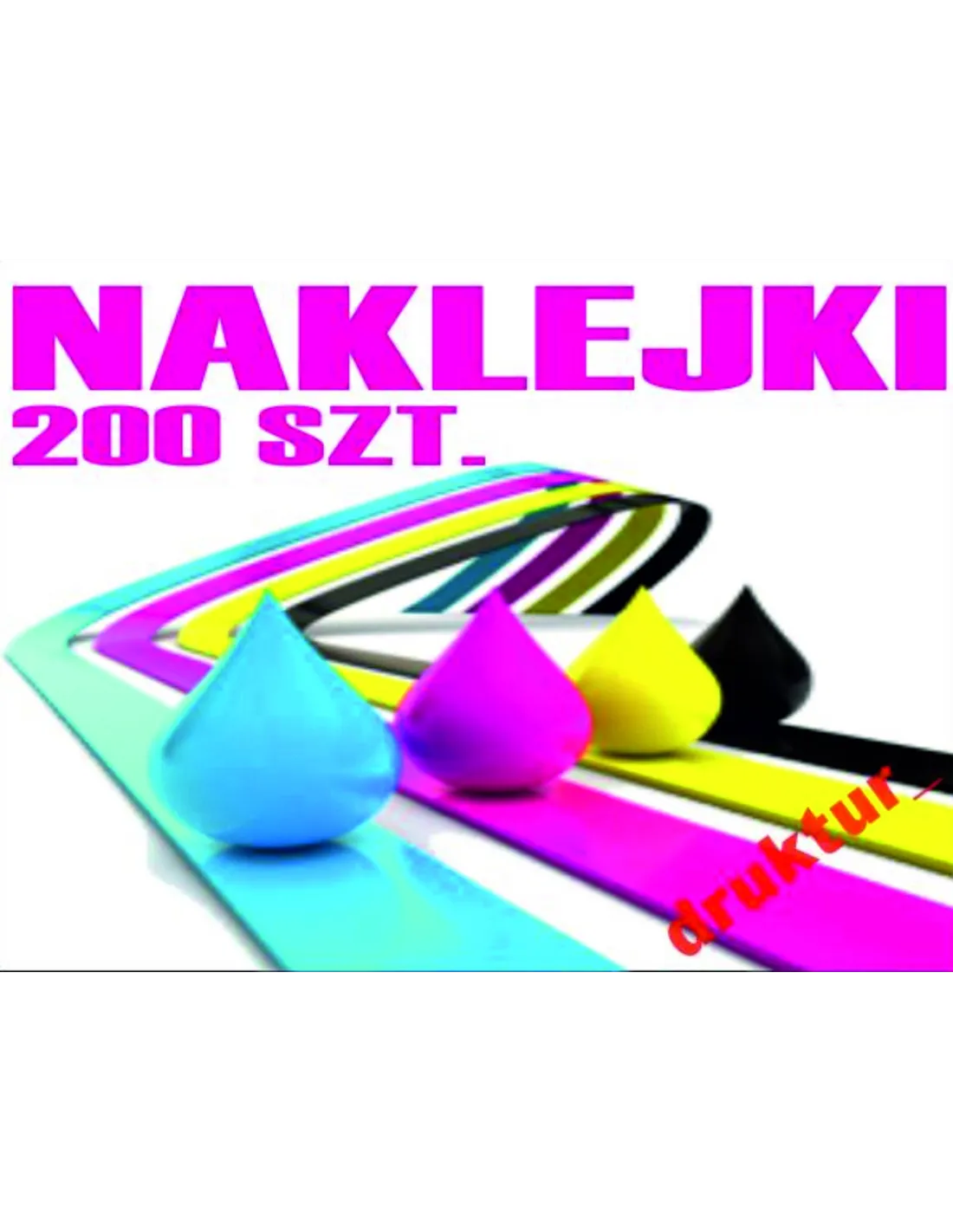 • naklejki drukowane na arkuszu, nacinane po obrysie, nie rozcinamy na pojedyncze sztuki