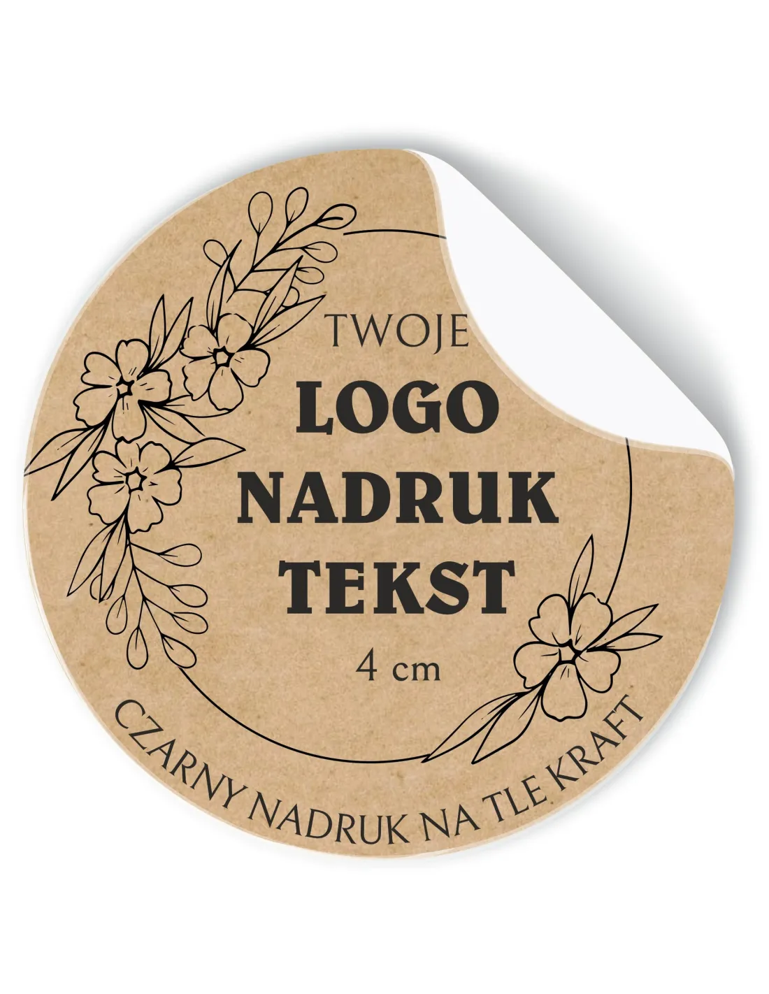 Naklejki z LOGO ETYKIETY REKLAMOWE twój nadruk grafika eko kraft 4cm 500szt