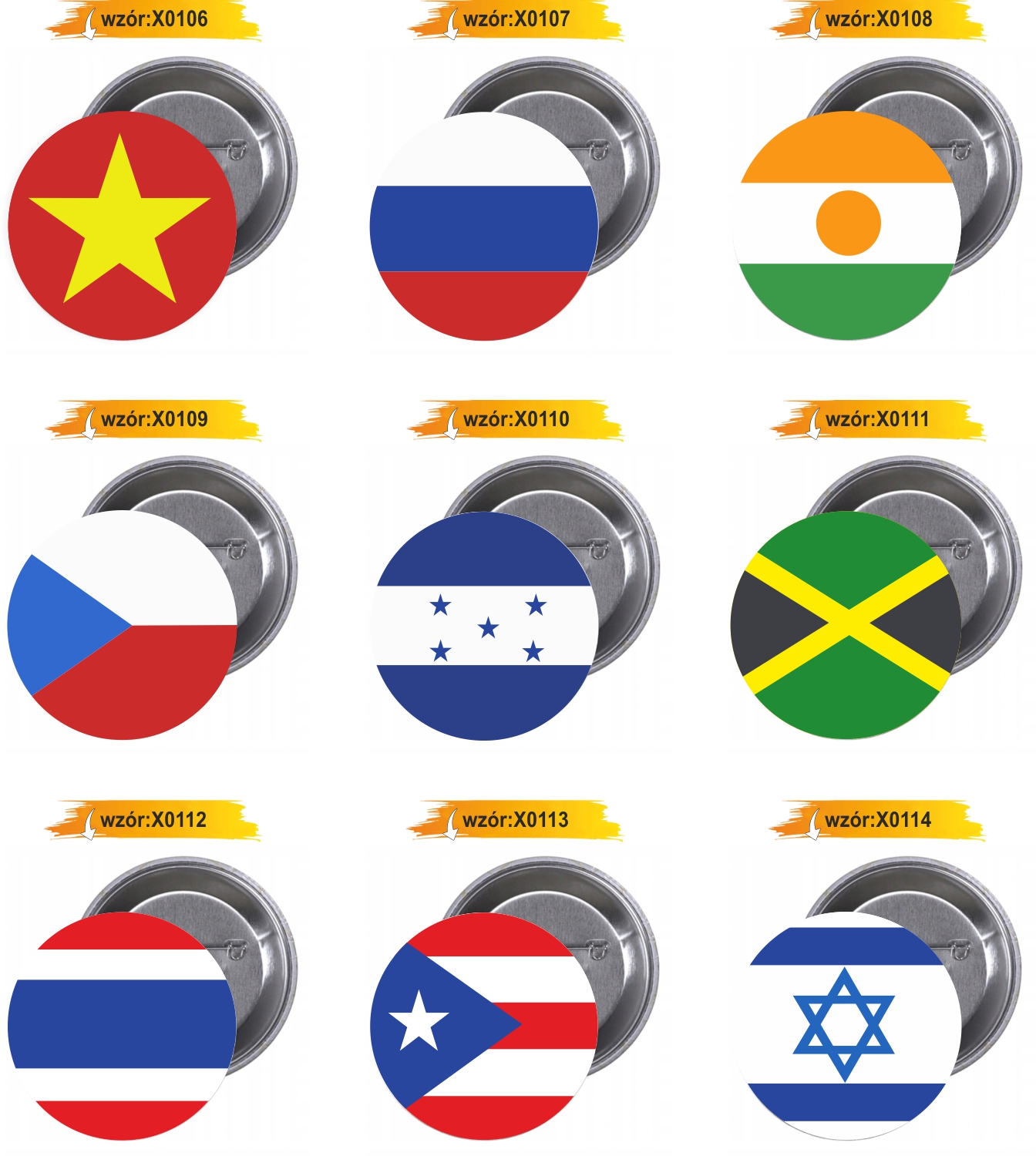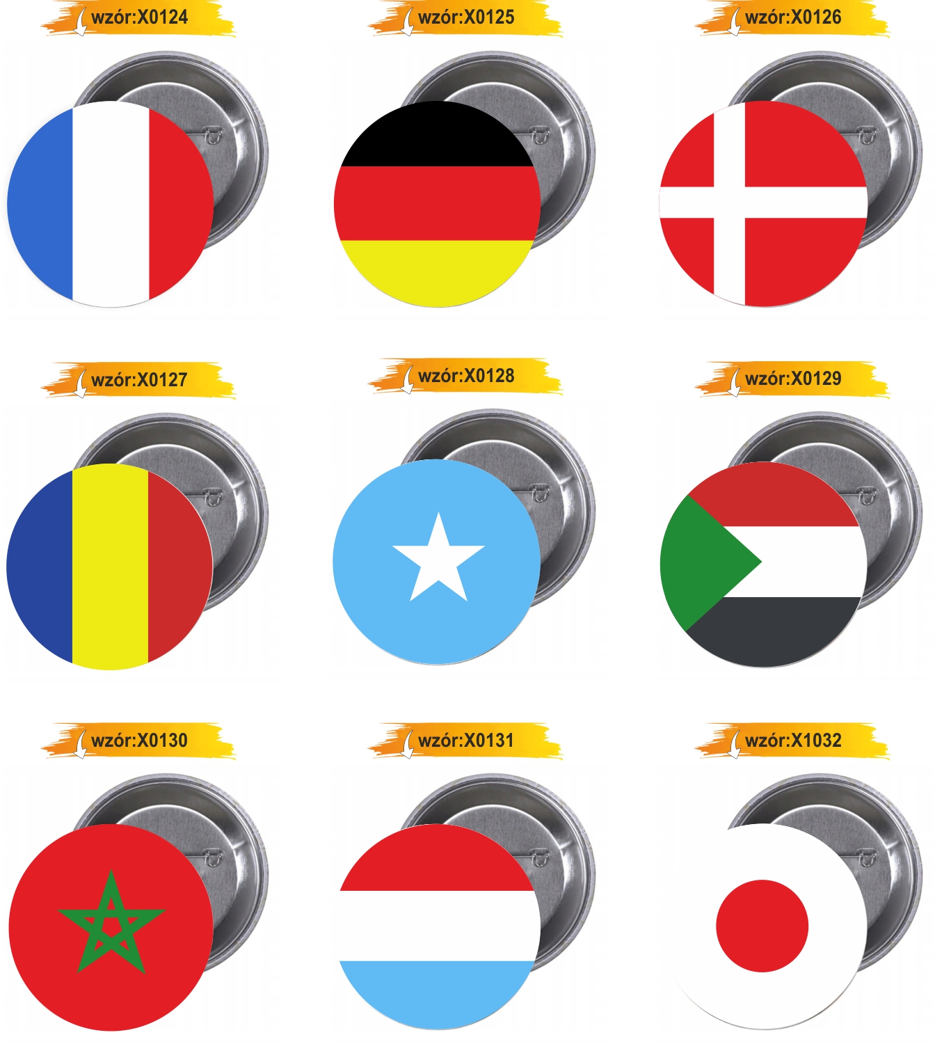 • Materiał: Metalowa przypinka z agrafką + nadruk pełnokolorowy CMYK + folijka