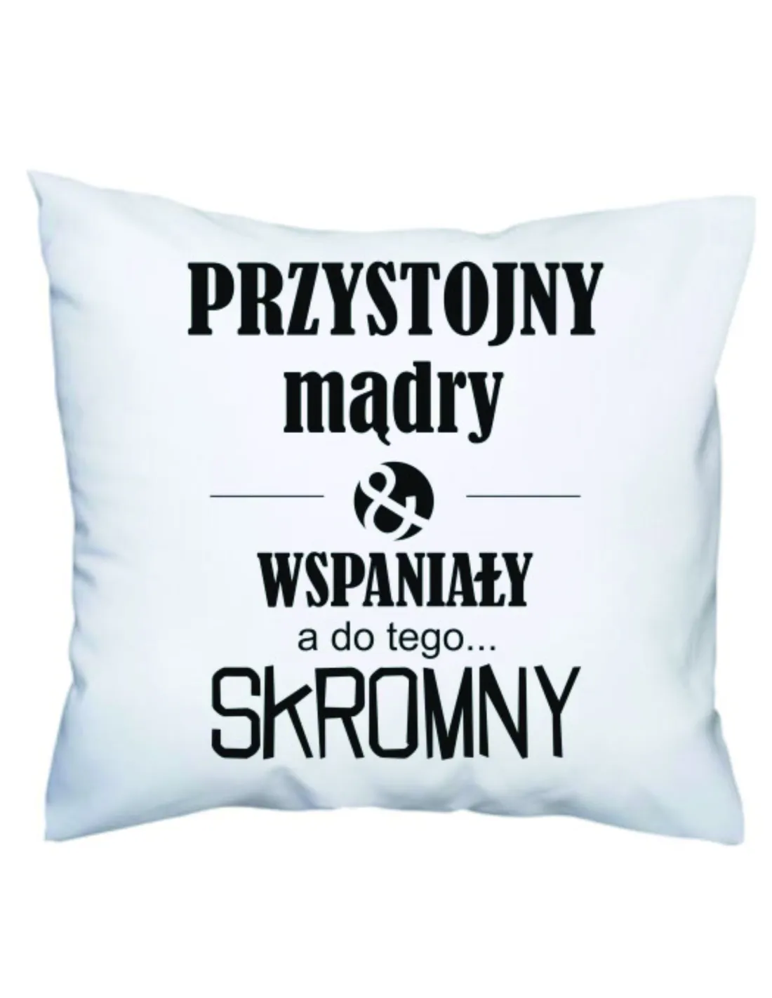 Poduszka prezenr dla niego z nadrukiem przystojny mądry wspaniały a do tego... skromny