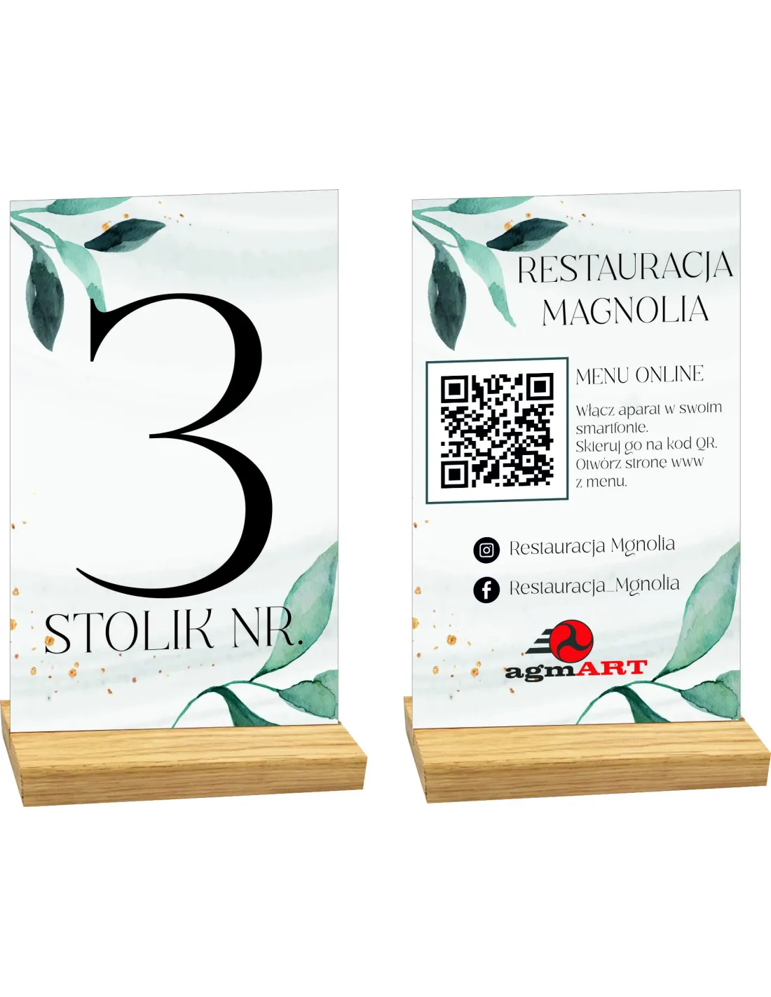 NUMER STOLIKA RESTAURACJA z plexi KOD QR LOGO z nadrukiem TWÓJ TEKST