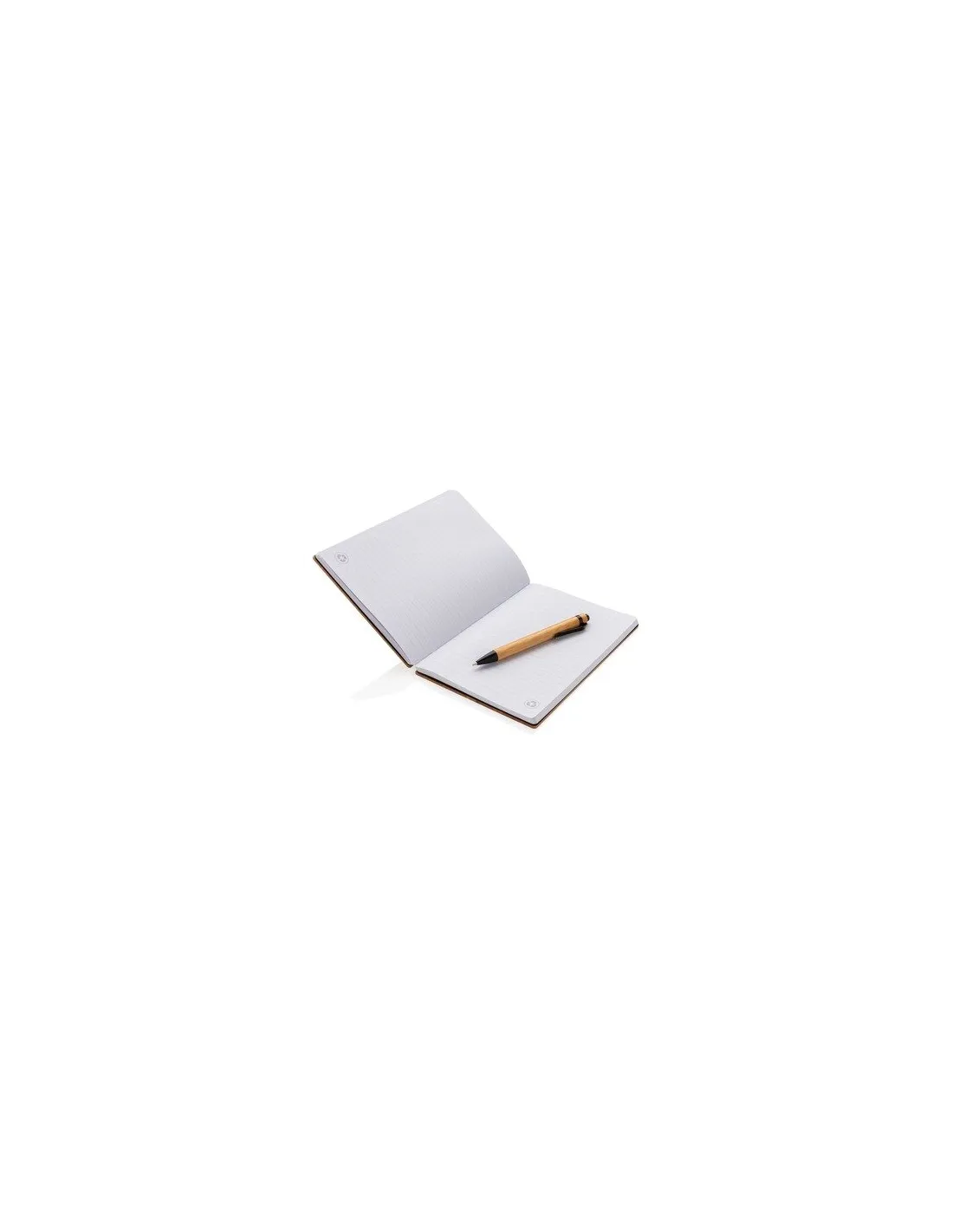 • Bambusowy notatnik A5 (90 kartek z papieru z recyklingu 70 g/m2), bambusowy długopis w komplecie, w ozdobnym pudełku z papieru kraftowego
