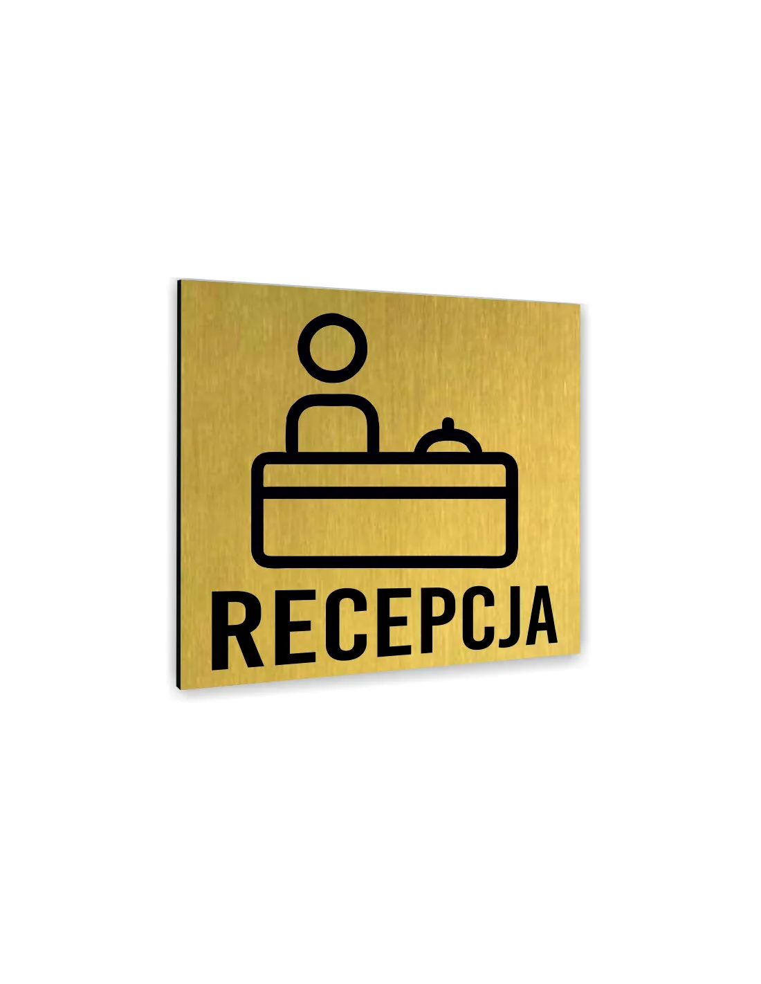 Tabliczka ZŁOTA RECEPCJA TEKST DOWOLNY TEKST NAPIS Tablica nierdzewna PIKTOGRAM ALUMINIUM