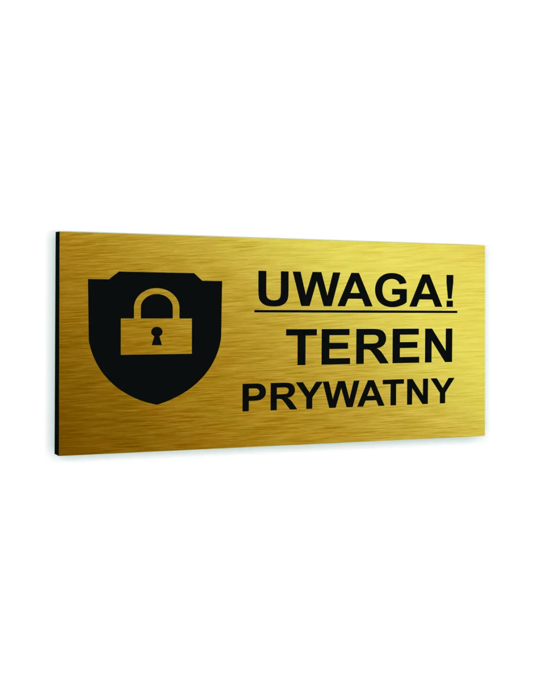 Tabliczka ZŁOTA aluminiowa TEREN PRYWATNY DOWOLNY NADRUK UV Tablica informacyjna