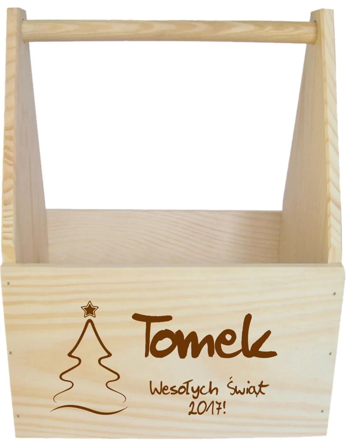 Eleganckie drewniane pudełko nosidło na piwo z indywidualnym nadrukiem wybranym przez klienta.