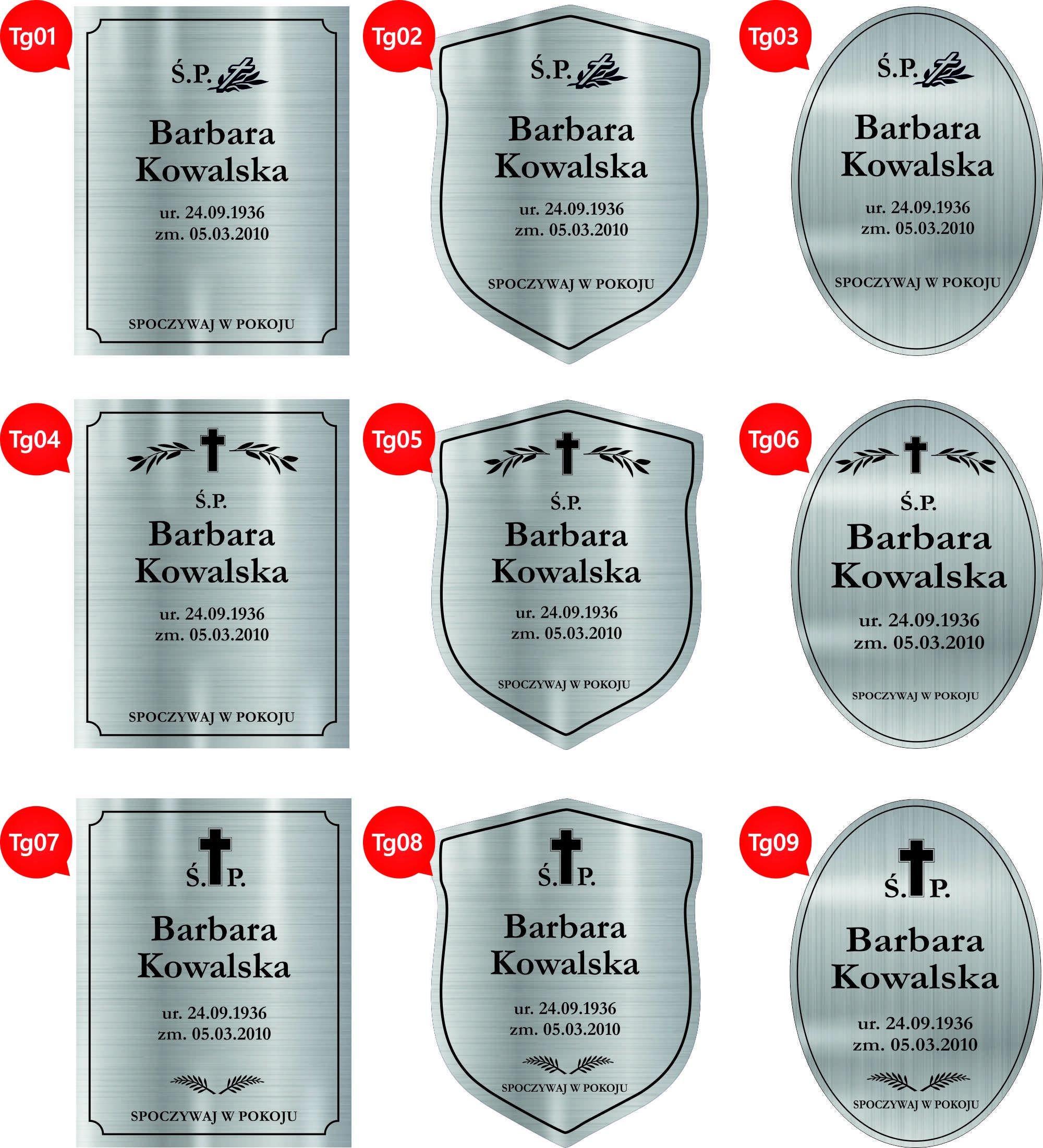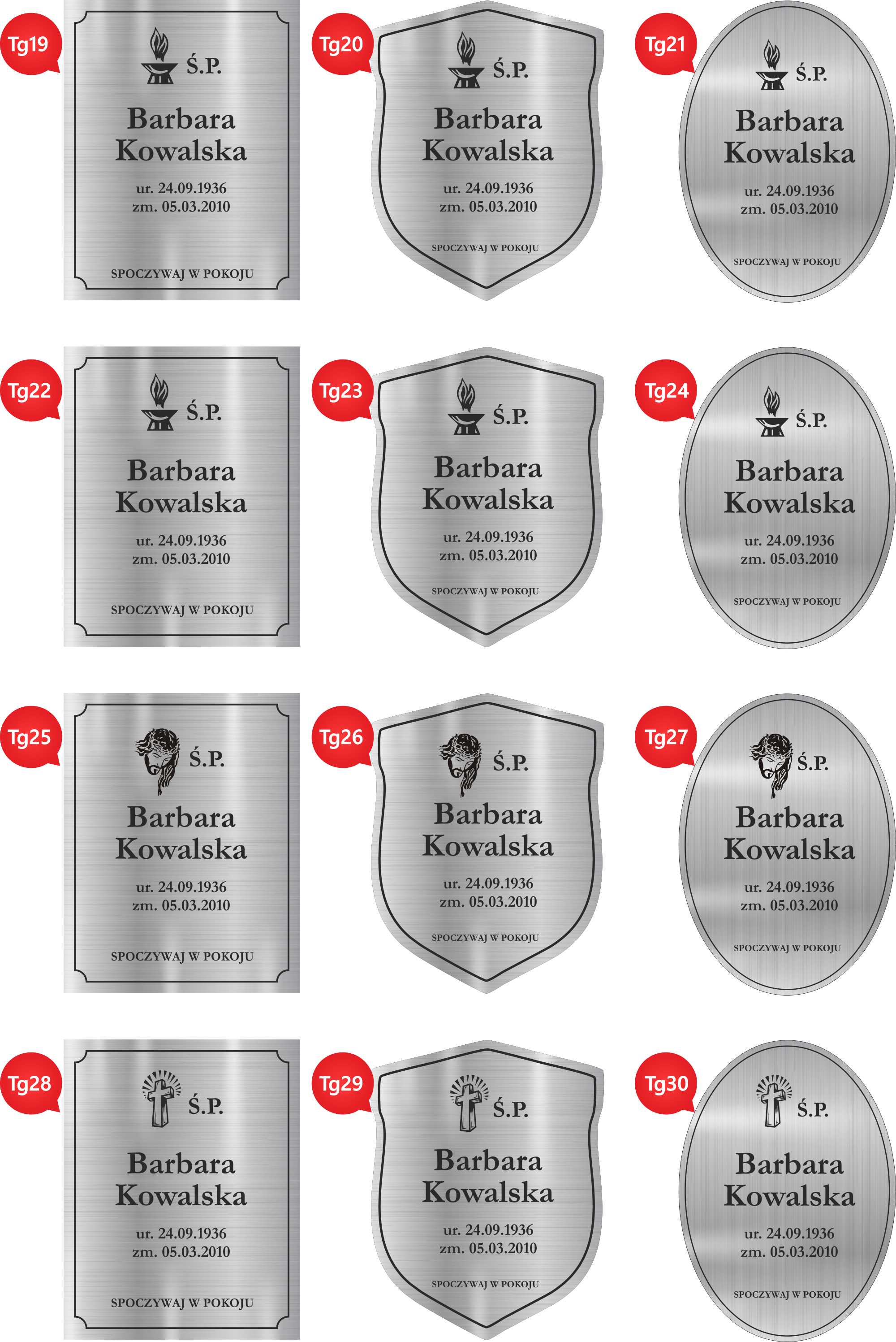 Przykładowe wzory graweru na tabliczkach: