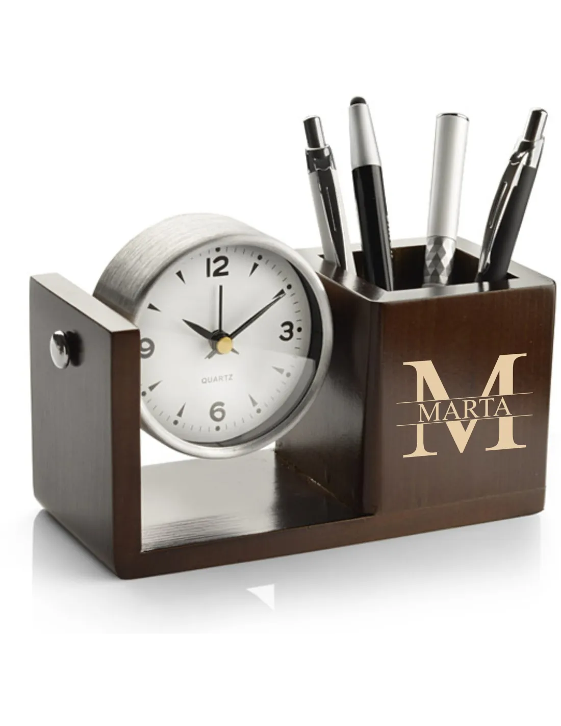 Grawerowany Przybornik na Biurko – Zegarkiem Personalizowany