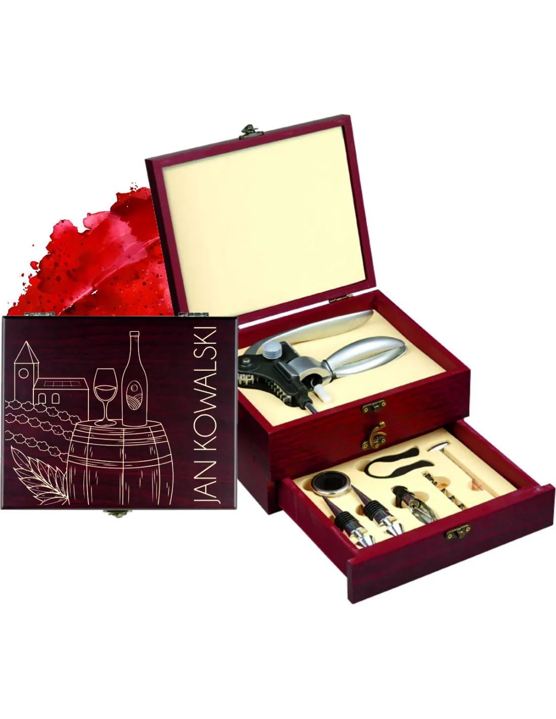 GRAWEROWANY Zestaw Akcesoria do wina PREZENT DLA MIŁOŚNIKA WINA z imieniem Informacje dodatkowe z grawerem