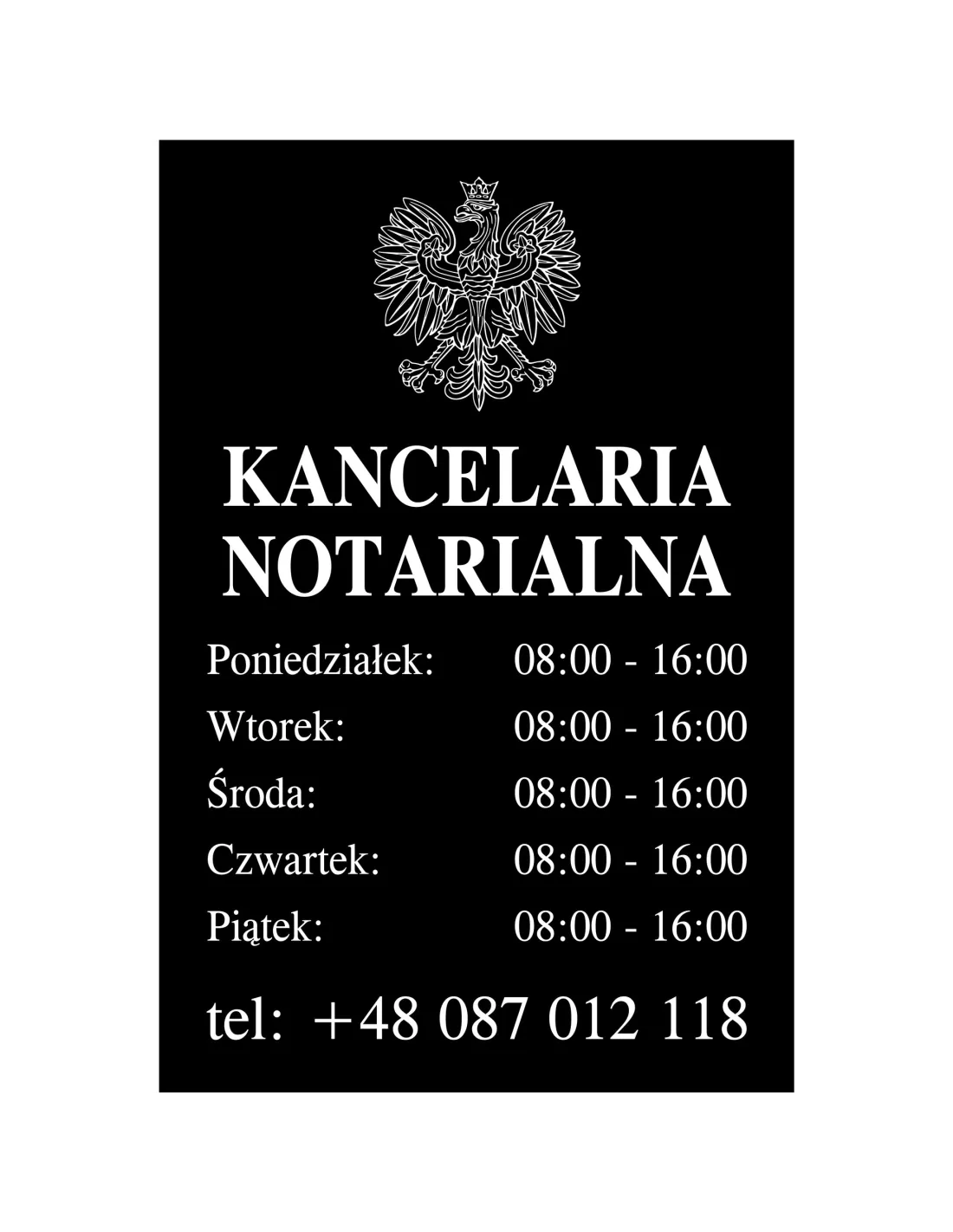 Tabliczka Grawerowana Kancelaria Notarialna Godziny