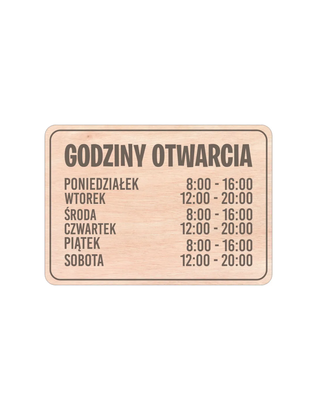 Grawerowana TABLICZKA DREWNIANA z godzinami otwarcia TWÓJ TEKST LOGO A5