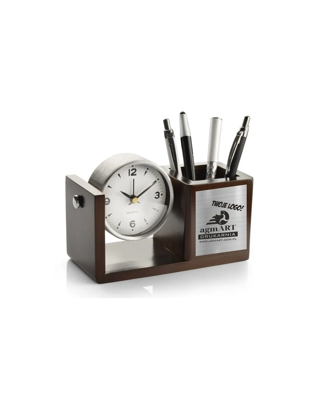 Przybornik na biurko z zegarem z TWOIM LOGO DANYMI FIRMY GADŻET FIRMOWY