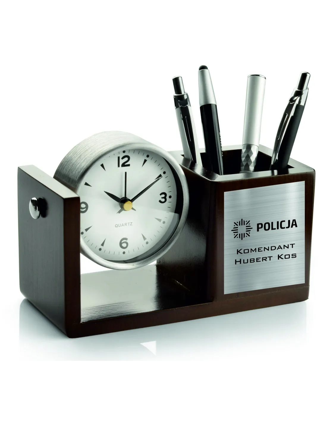 Zegar Organizer na Biurko z Dedykacją Prezent dla policjanta komendanta