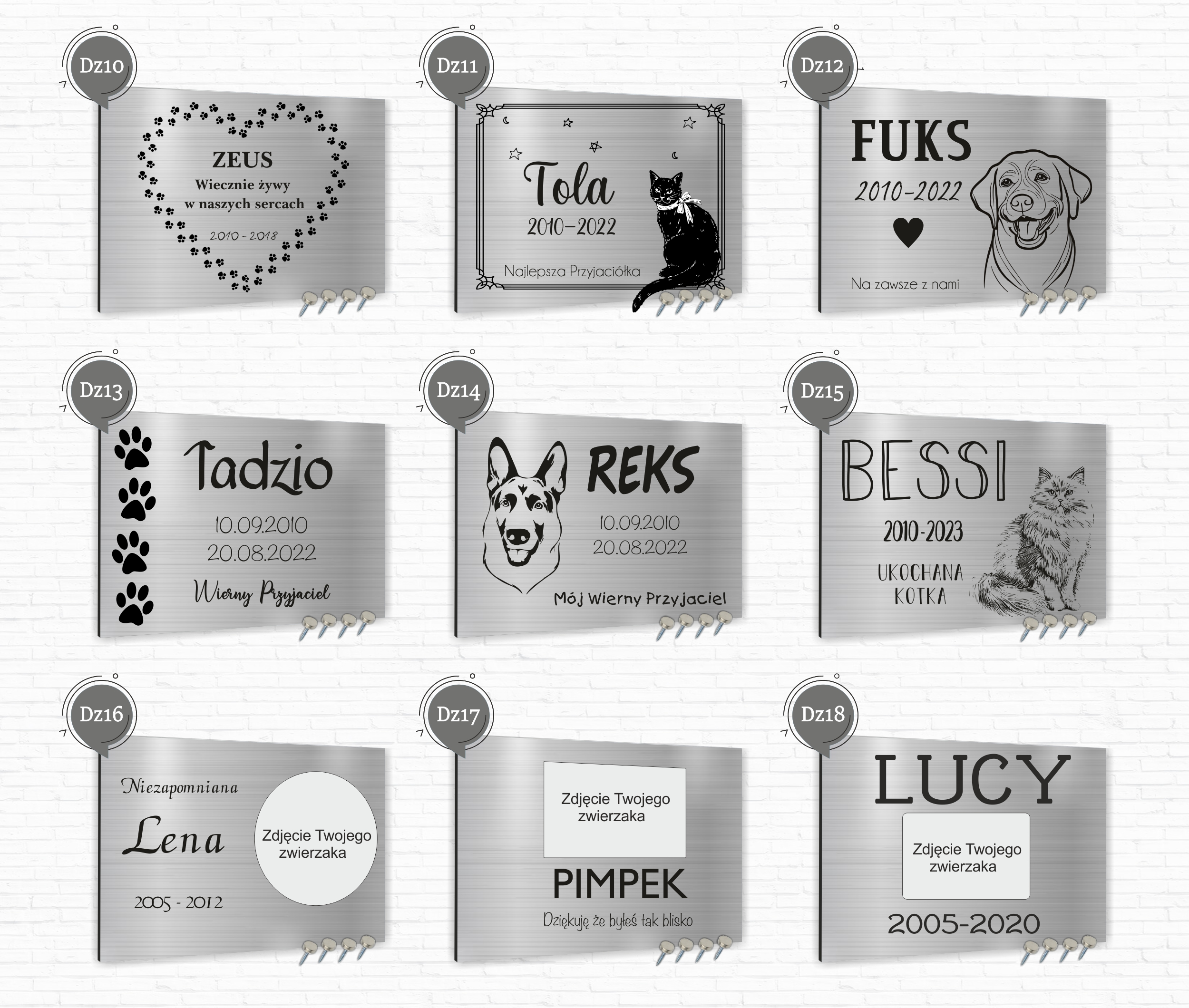 Przykładowe wzory nadruku na tabliczkach: