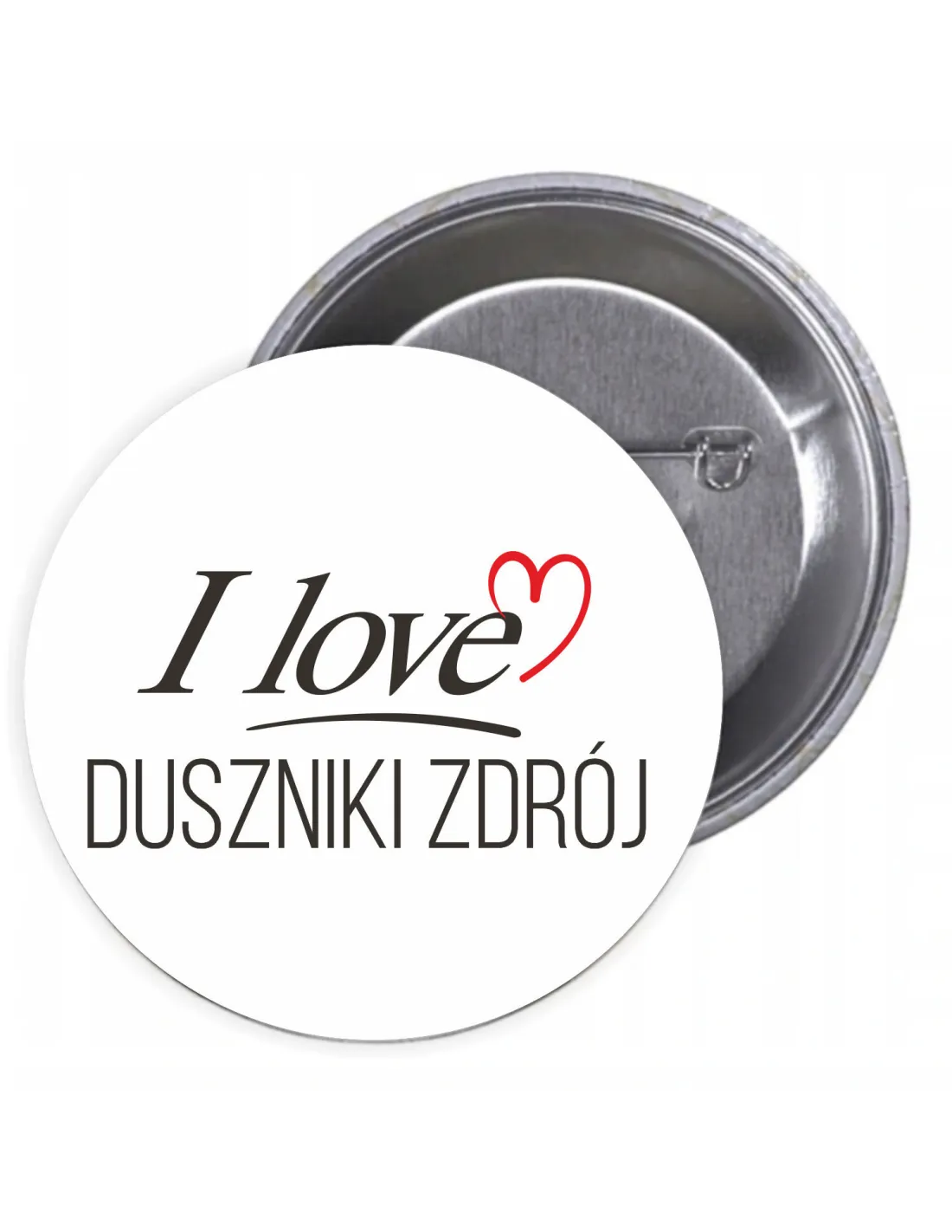 Przypinki buttony I LOVE DUSZNIKI ZDRÓJ znaczki badziki z grafiką