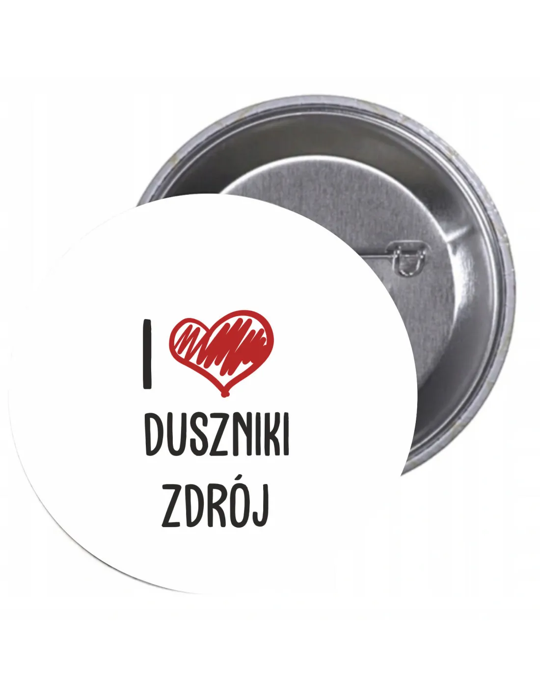 Przypinki buttony I LOVE DUSZNIKI ZDRÓJ znaczki badziki z grafiką