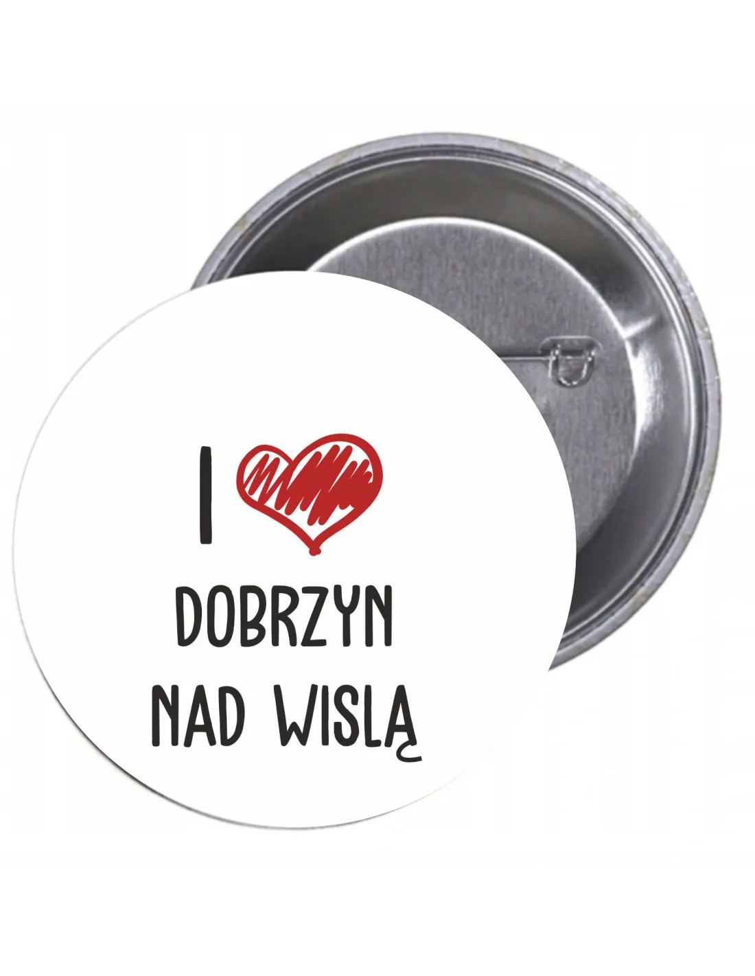 Przypinki buttony I LOVE DOBRZYŃ NAD WISŁĄ znaczki badziki z grafiką
