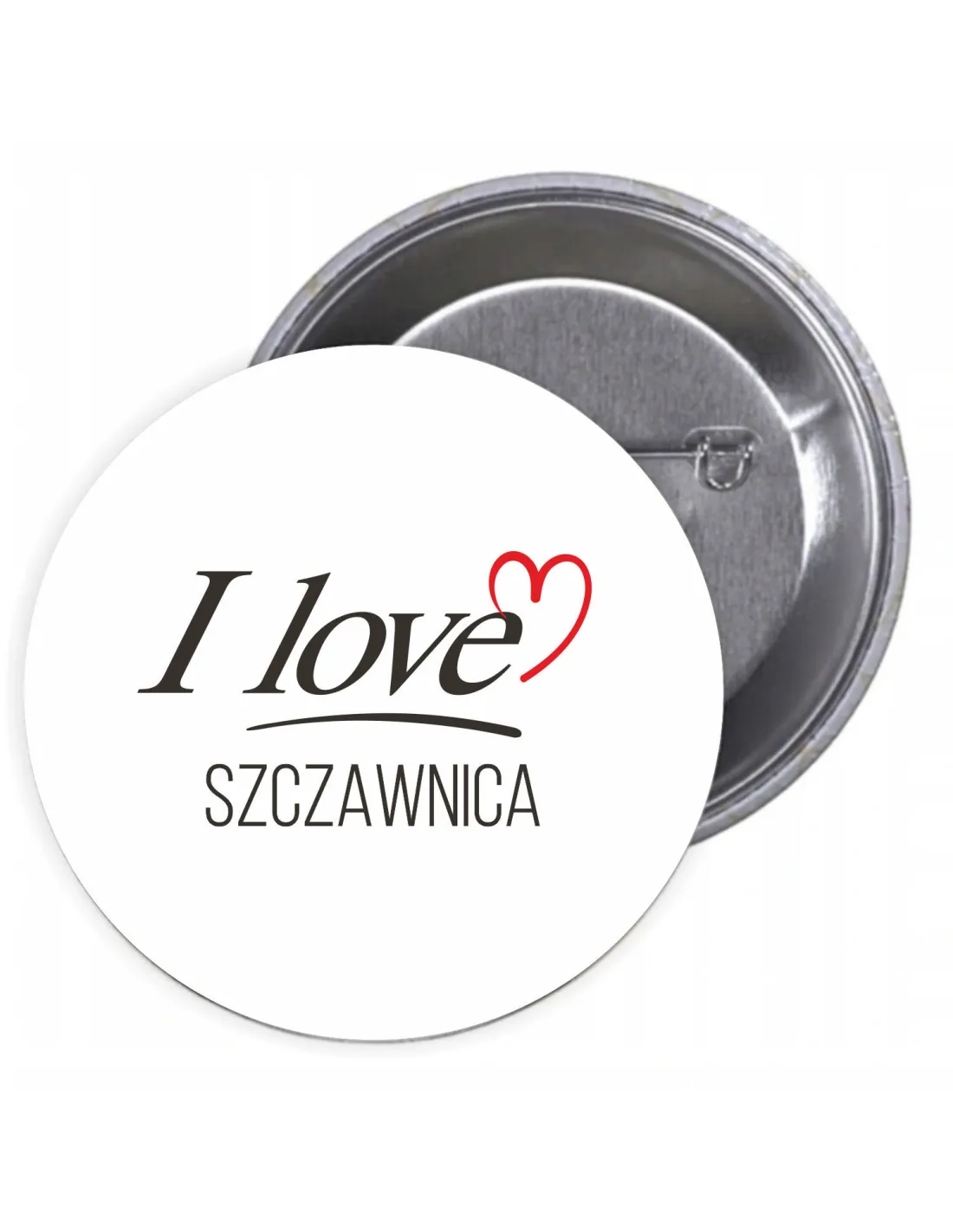 Przypinki buttony I LOVE SZCZAWNICA znaczki badziki z grafiką