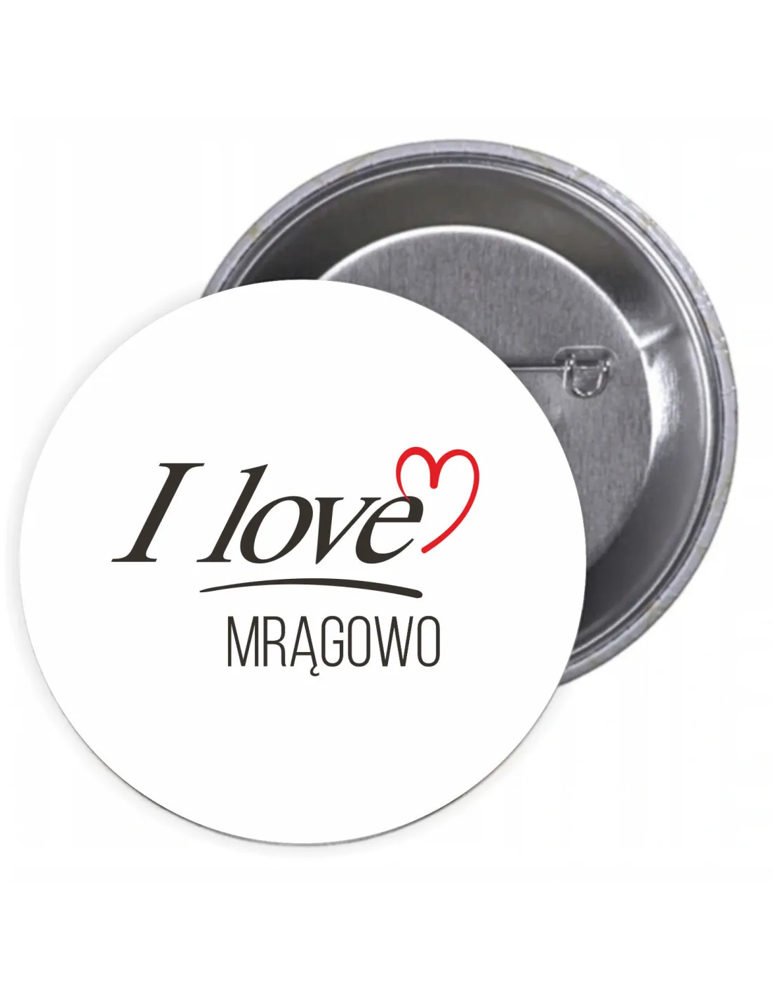 Przypinki buttony I LOVE MRĄGOWO znaczki badziki z grafiką
