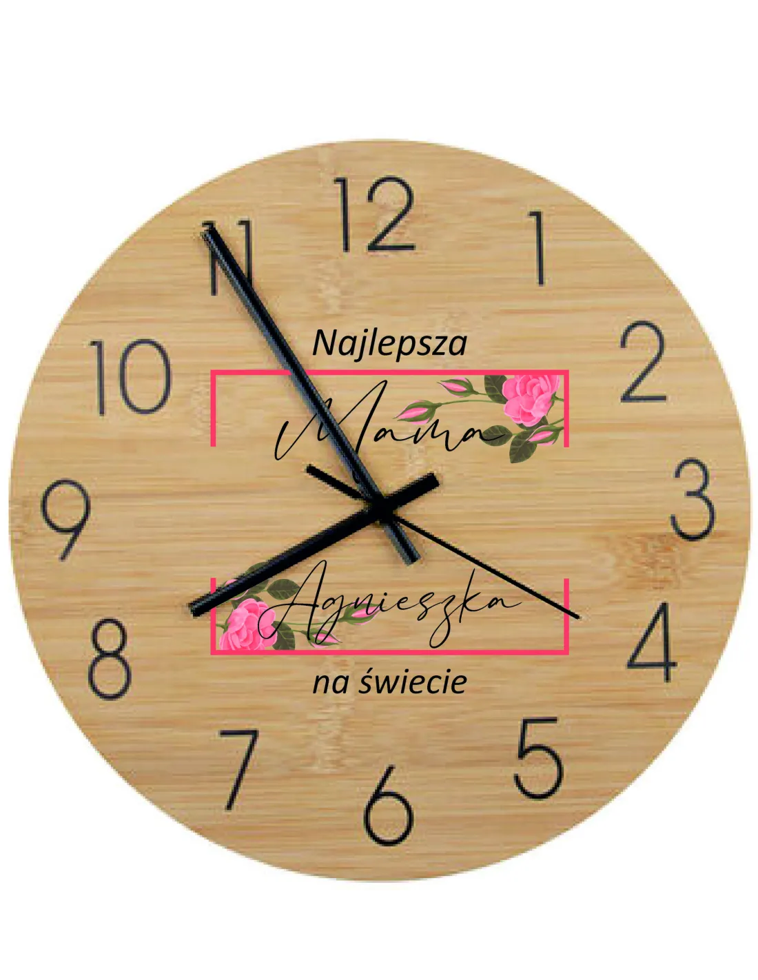 Bambusowy ZEGAR ścienny z nadrukiem UV prezent DLA MAMY