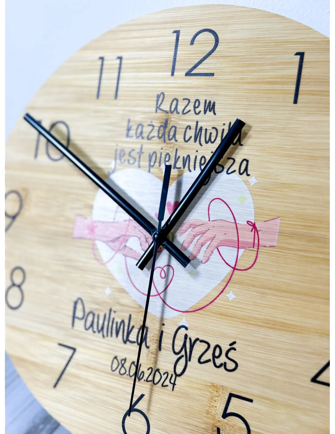 Bambusowy Zegar Ścienny z Nadrukiem UV Prezent dla Mamy