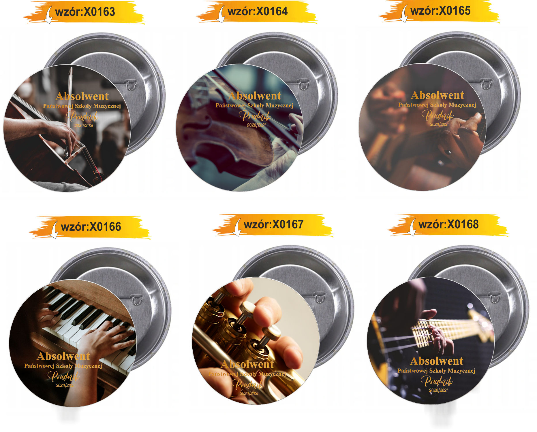 Przypinki buttony ABSOLWENT SZKOŁA MUZYCZNA GITARA KLASYCZNA znaczki badziki z grafiką