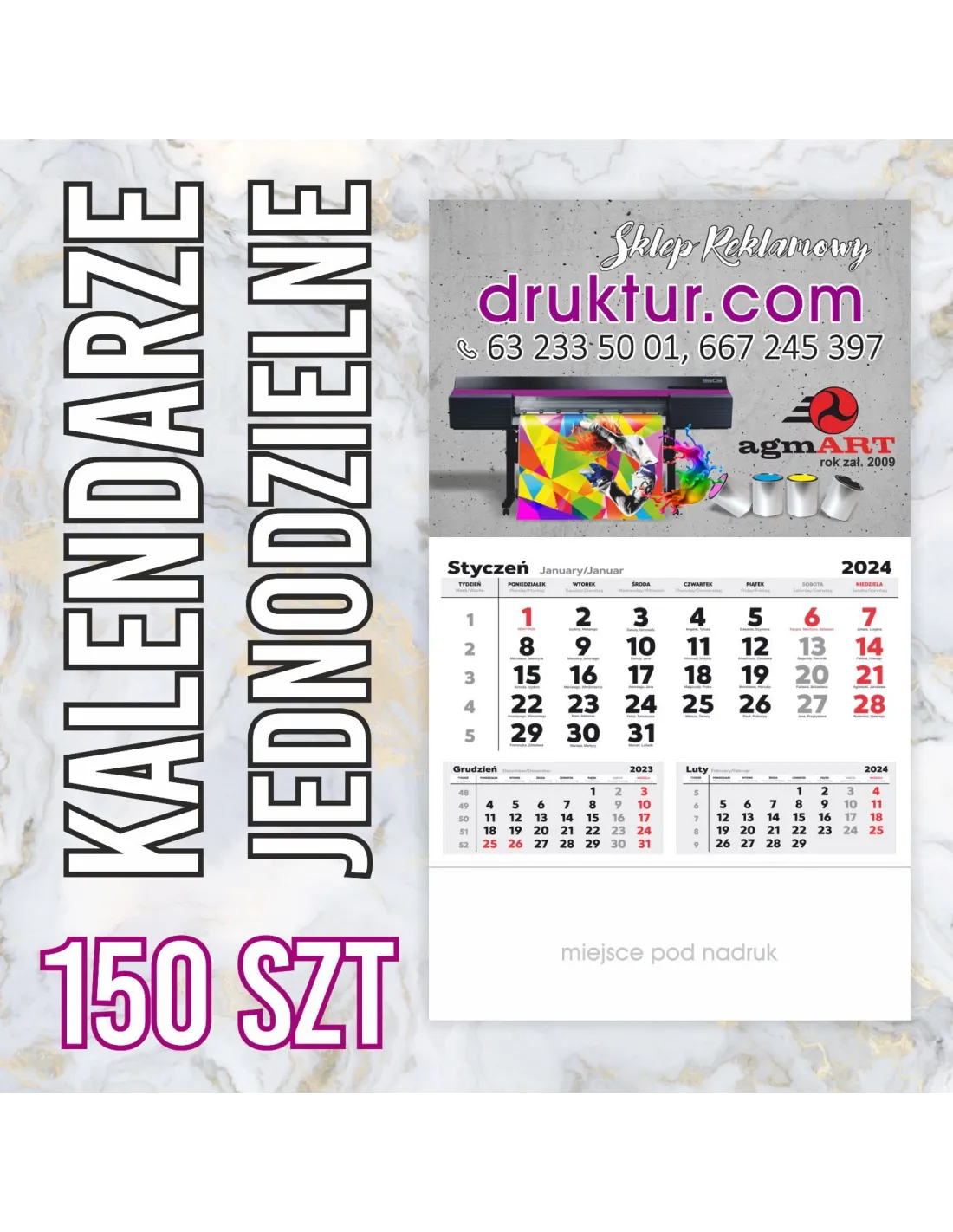 Kalendarze firmowe jednodzielne 2024 - 150 szt.