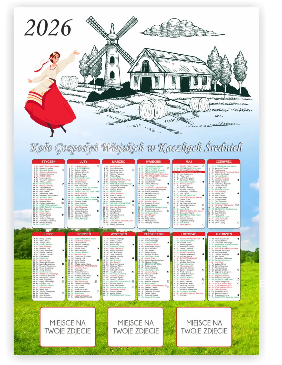 KALENDARZ KGW KOŁO GOSPODYŃ WIEJSKICH 2026 50 szt RÓŻNE WZORY