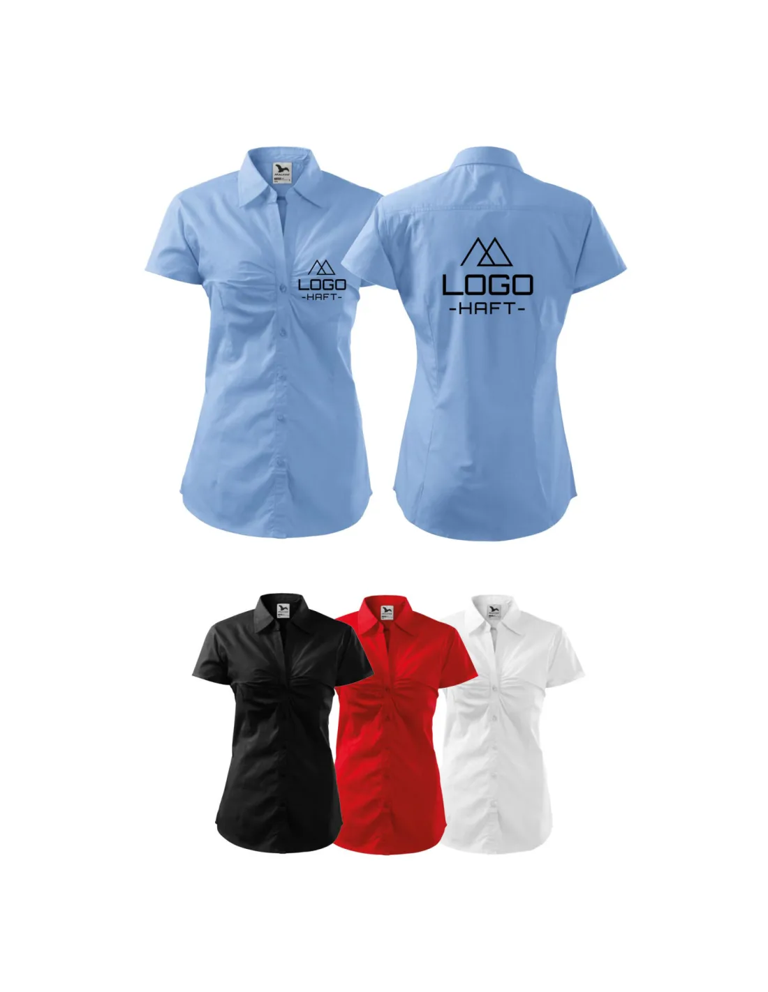 Koszula damska na kr. rękaw z haftem LOGO FIRMY x5