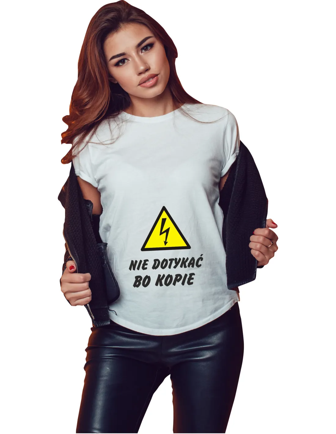 Koszulka z nadrukiem NIE DOTYKAĆ BO KOPIE ZNAK