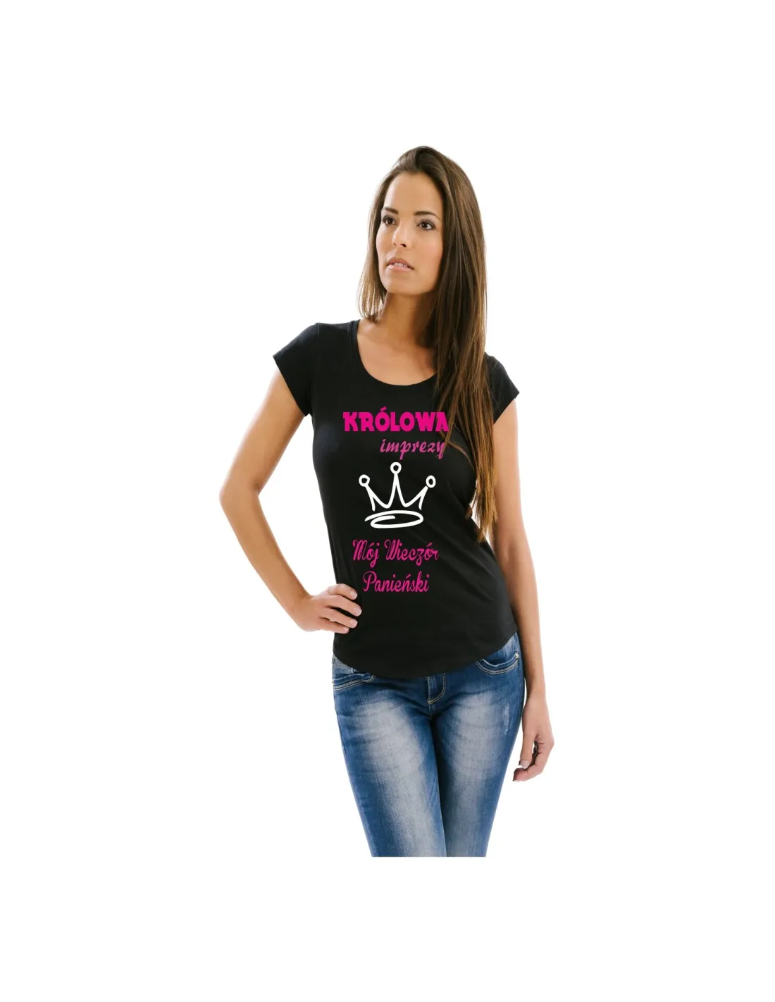 Koszulka z nadrukiem królowa imprezy mój wieczór panieński