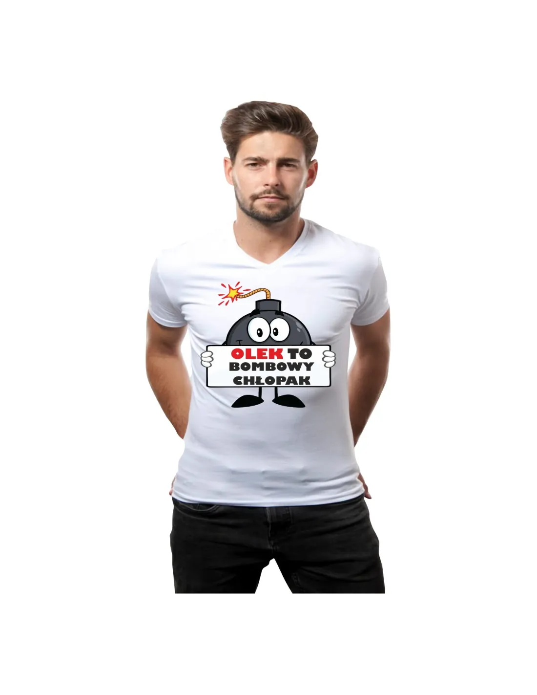 Koszulka z nadrukiem imię to bombowy chłopak prezent dla chłopaka