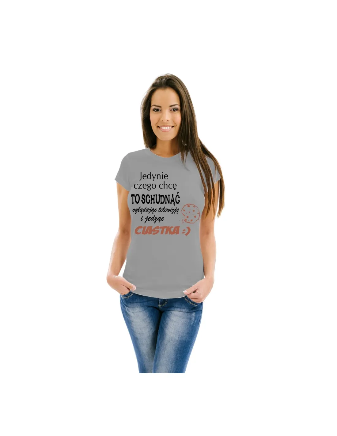 Koszulka z nadrukiem jedyne czego chcę to schudnąc oglądając telewizję i jedząc ciastka