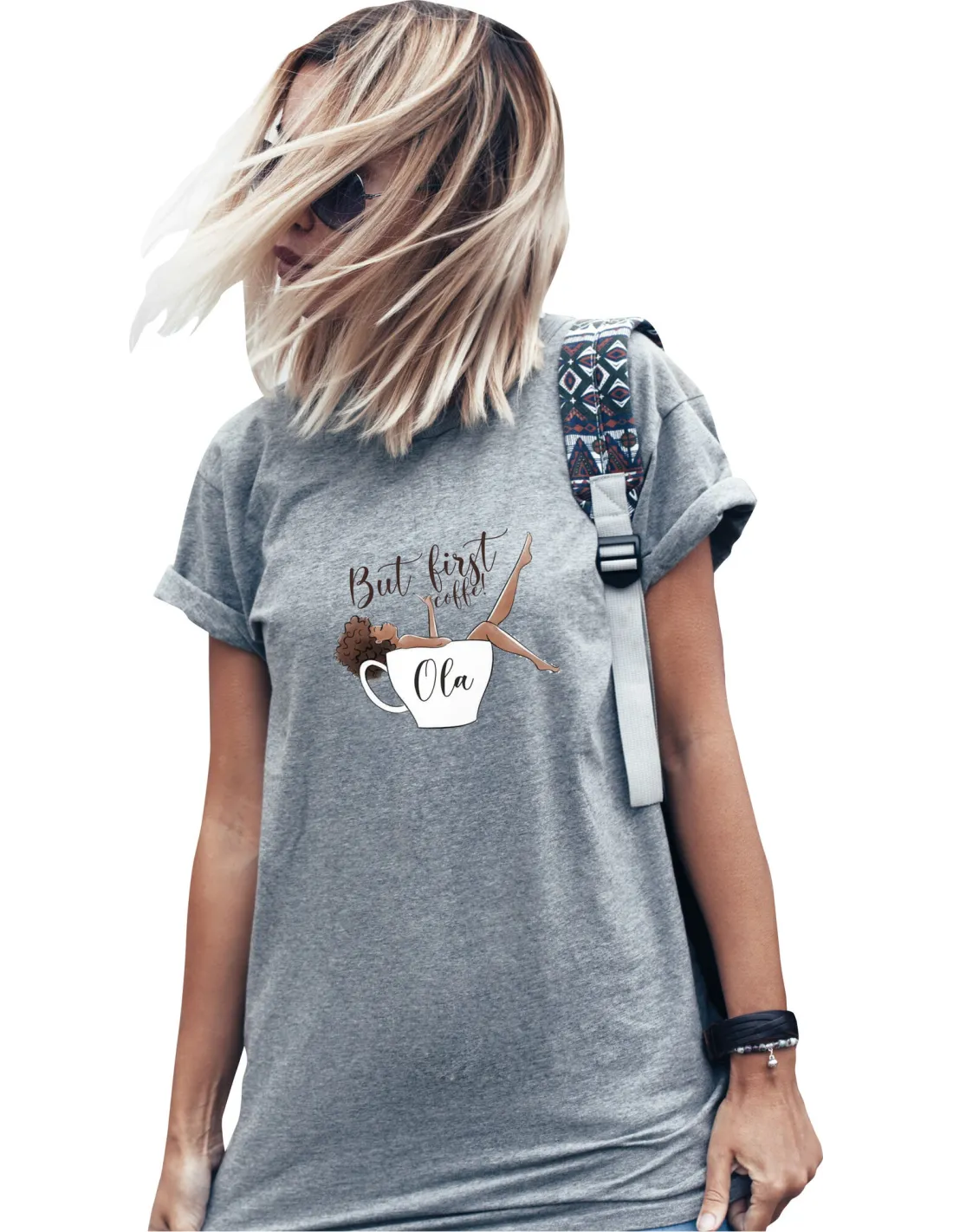 Koszulka z nadrukiem napis BUT FIRST COFFE