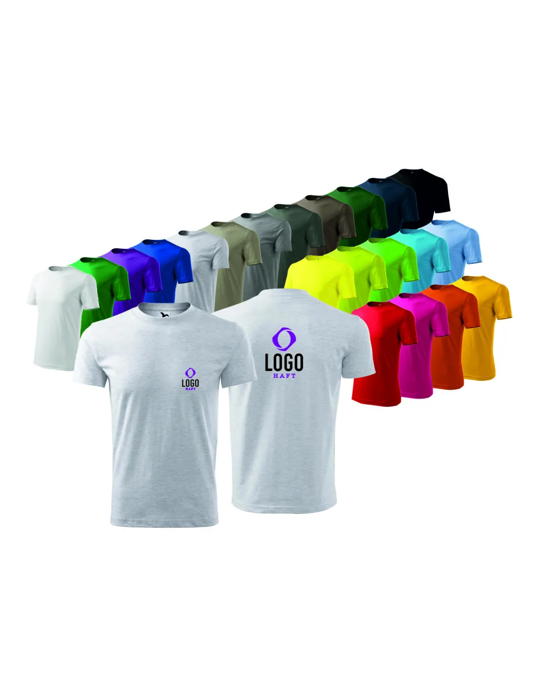 Dostępne kolory koszulek : biały, czarny, granatowy, jasnoszary, żółty, czerwony, chabrowy, butelkowa zieleń, pomarańczowy, ciemno szary, błękitny, zieleń trawy, jasny khaki, army, czerwień purpurowa, turkus, limonka, fioletowy, ciemny khaki, apple green, cytrynowy