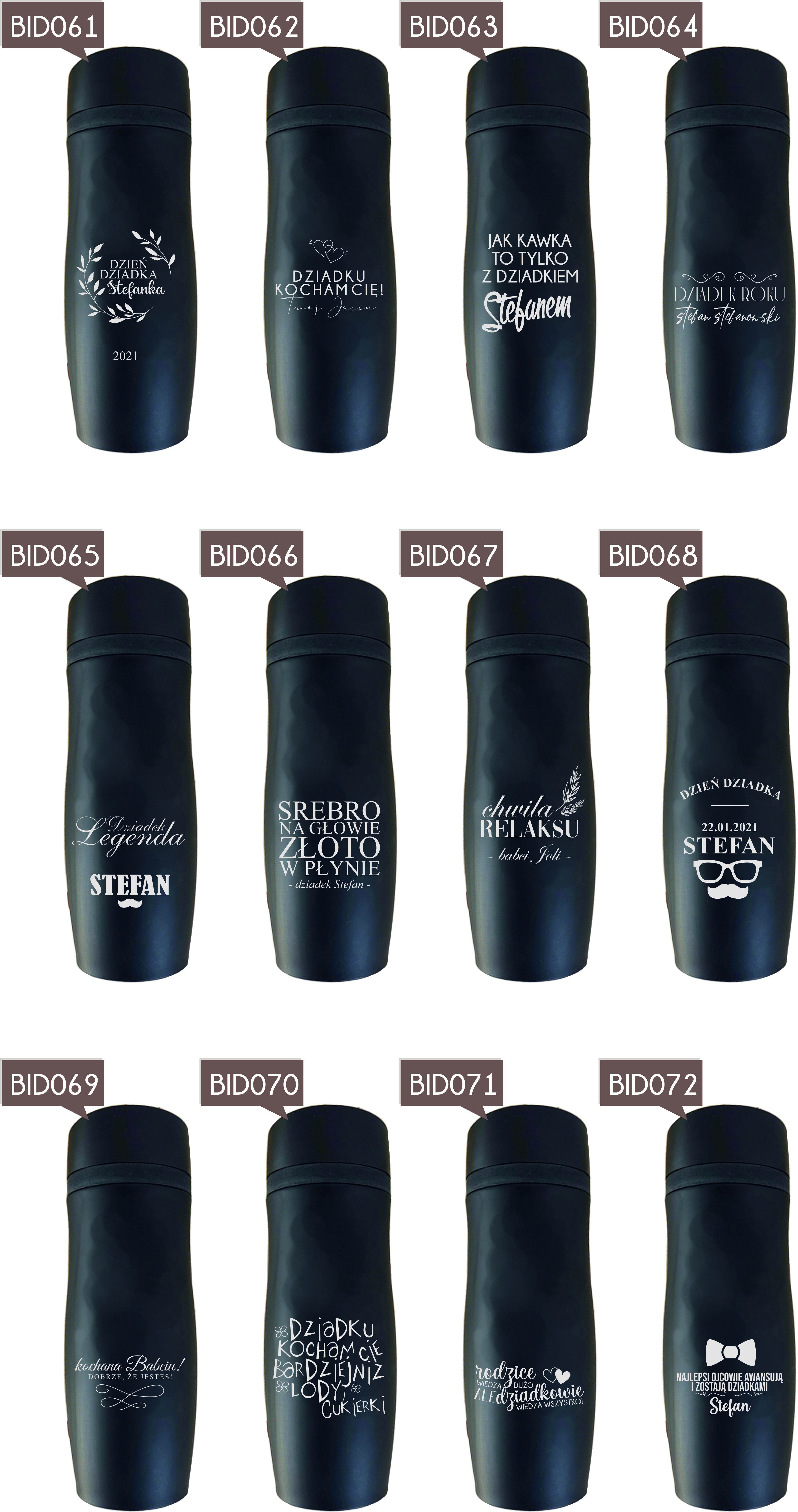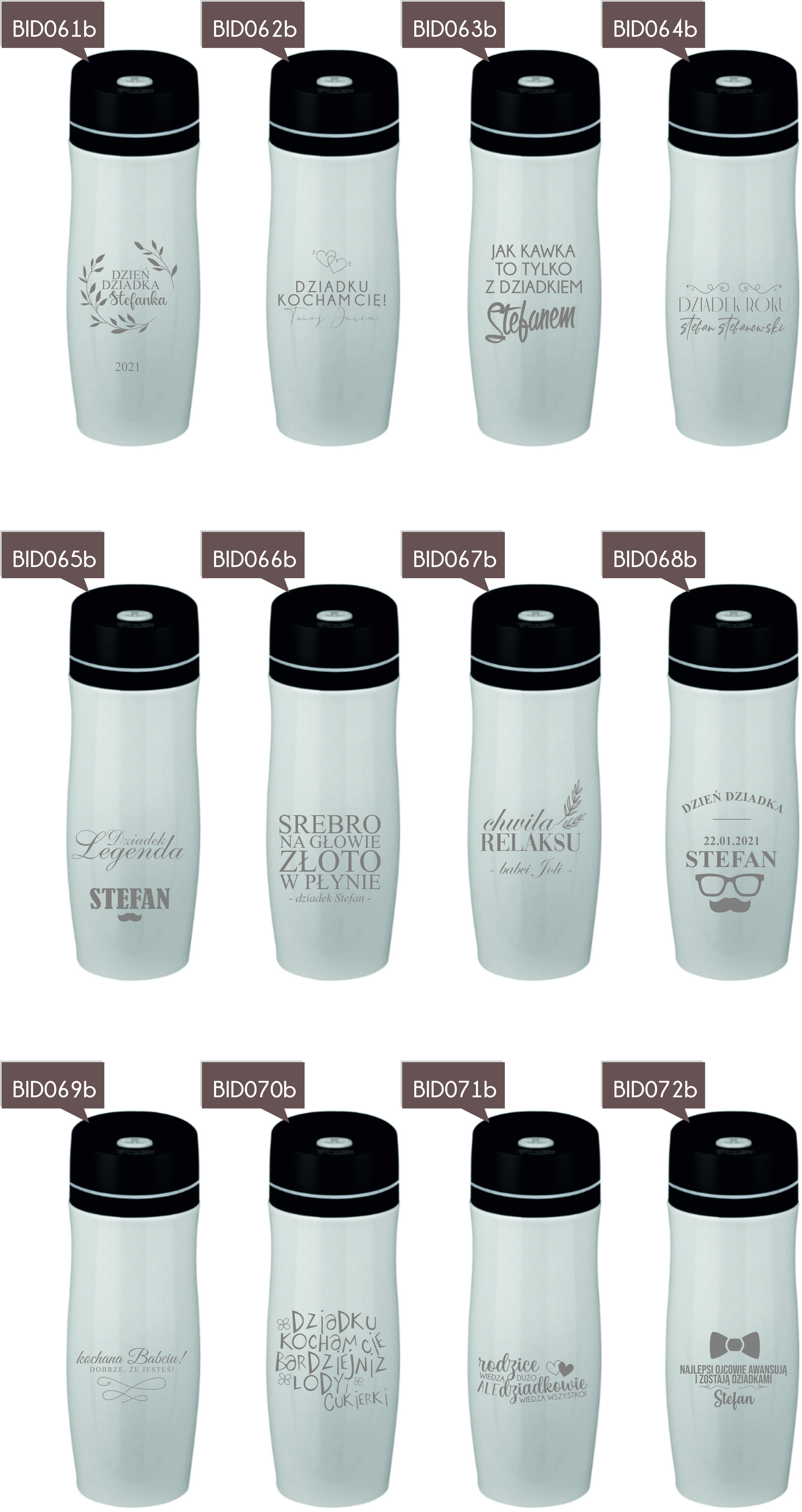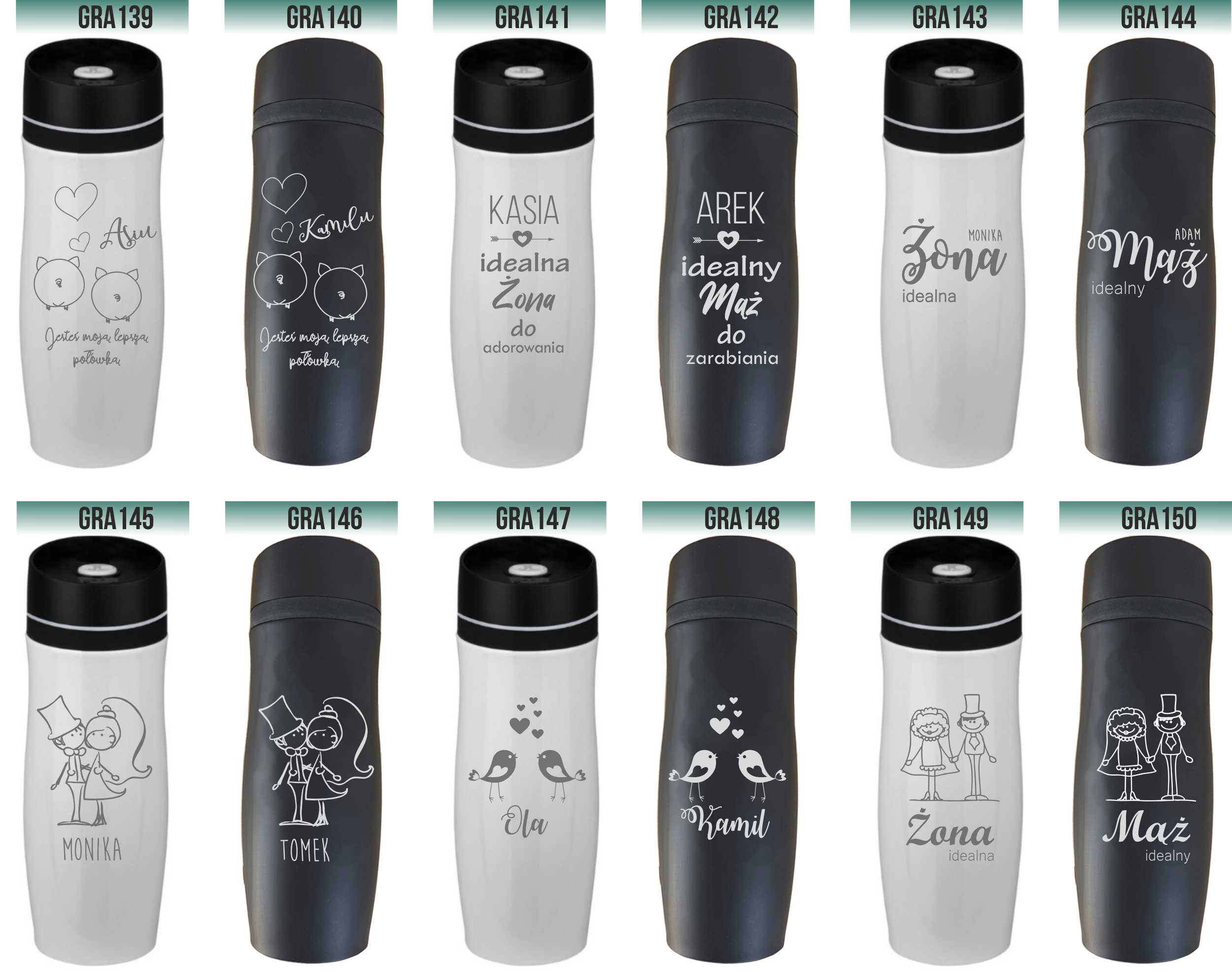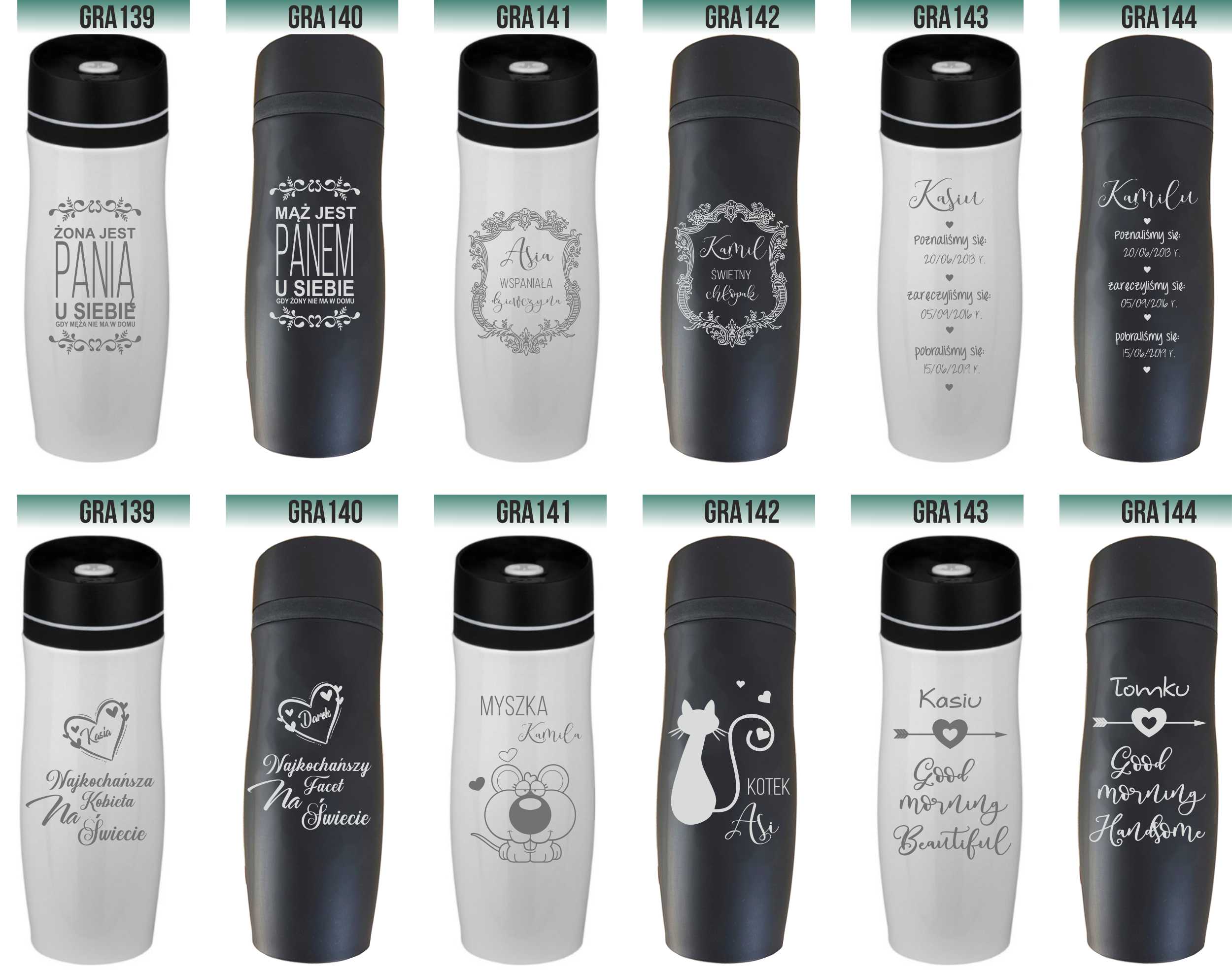 Przykładowe wzory kubków z grawerem: