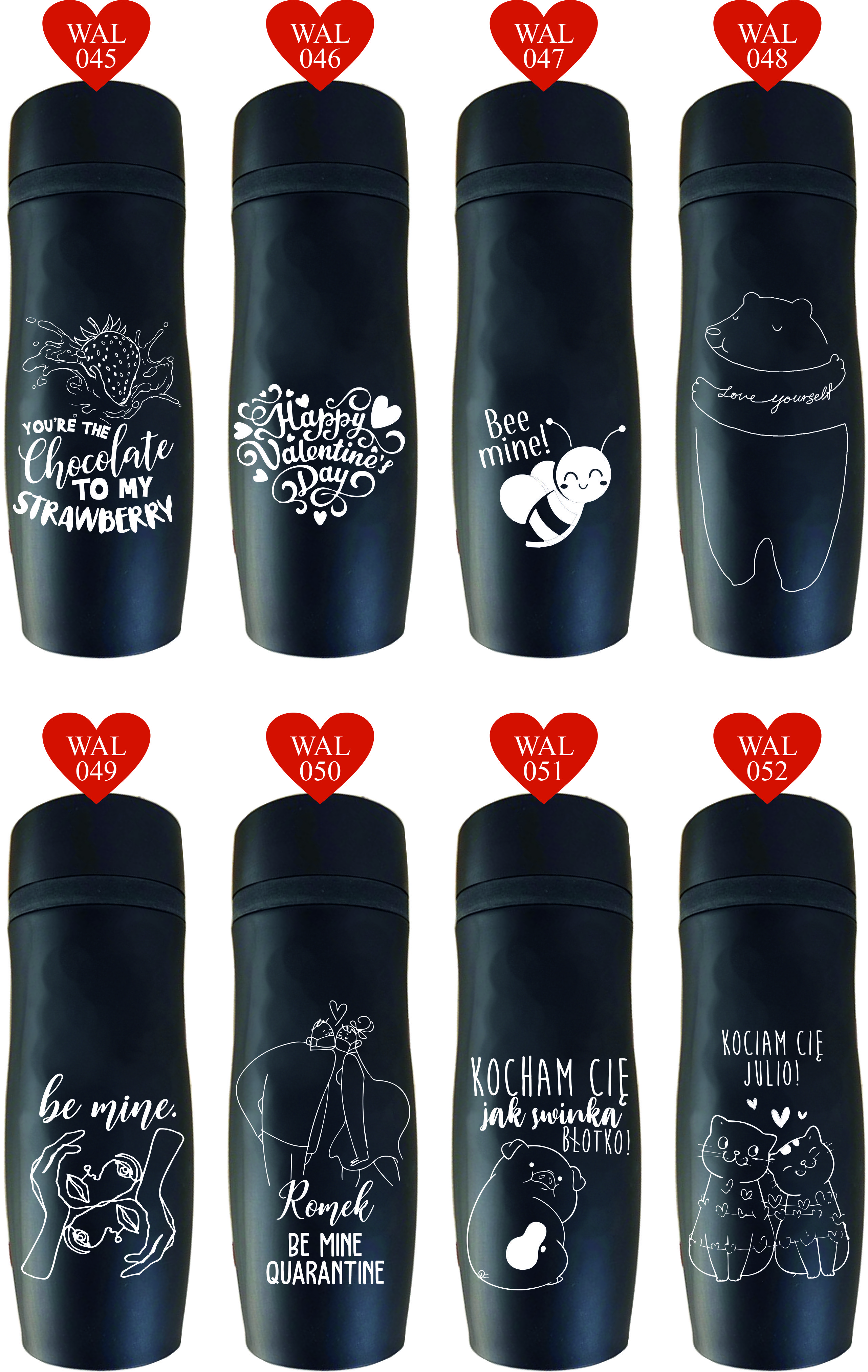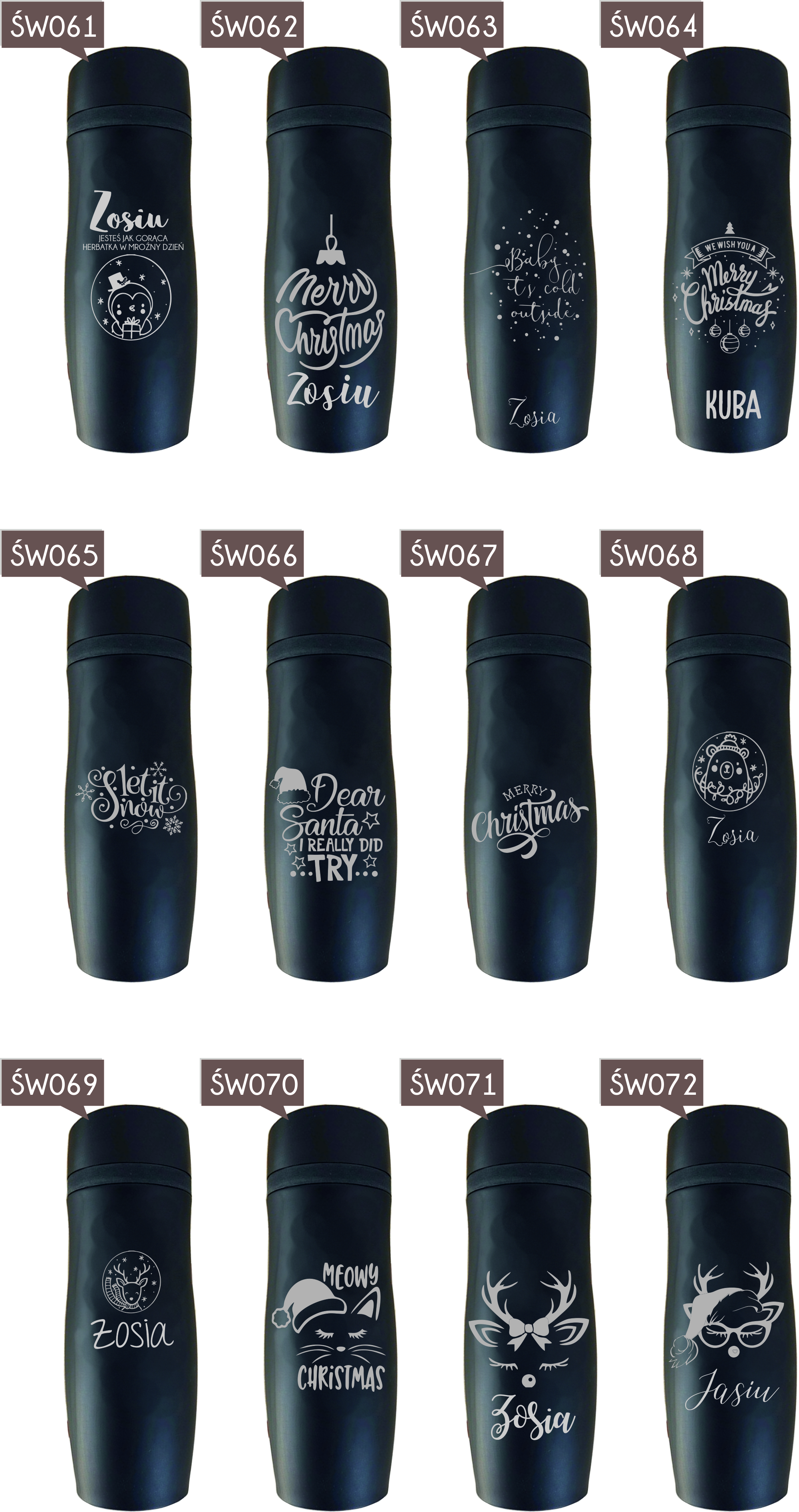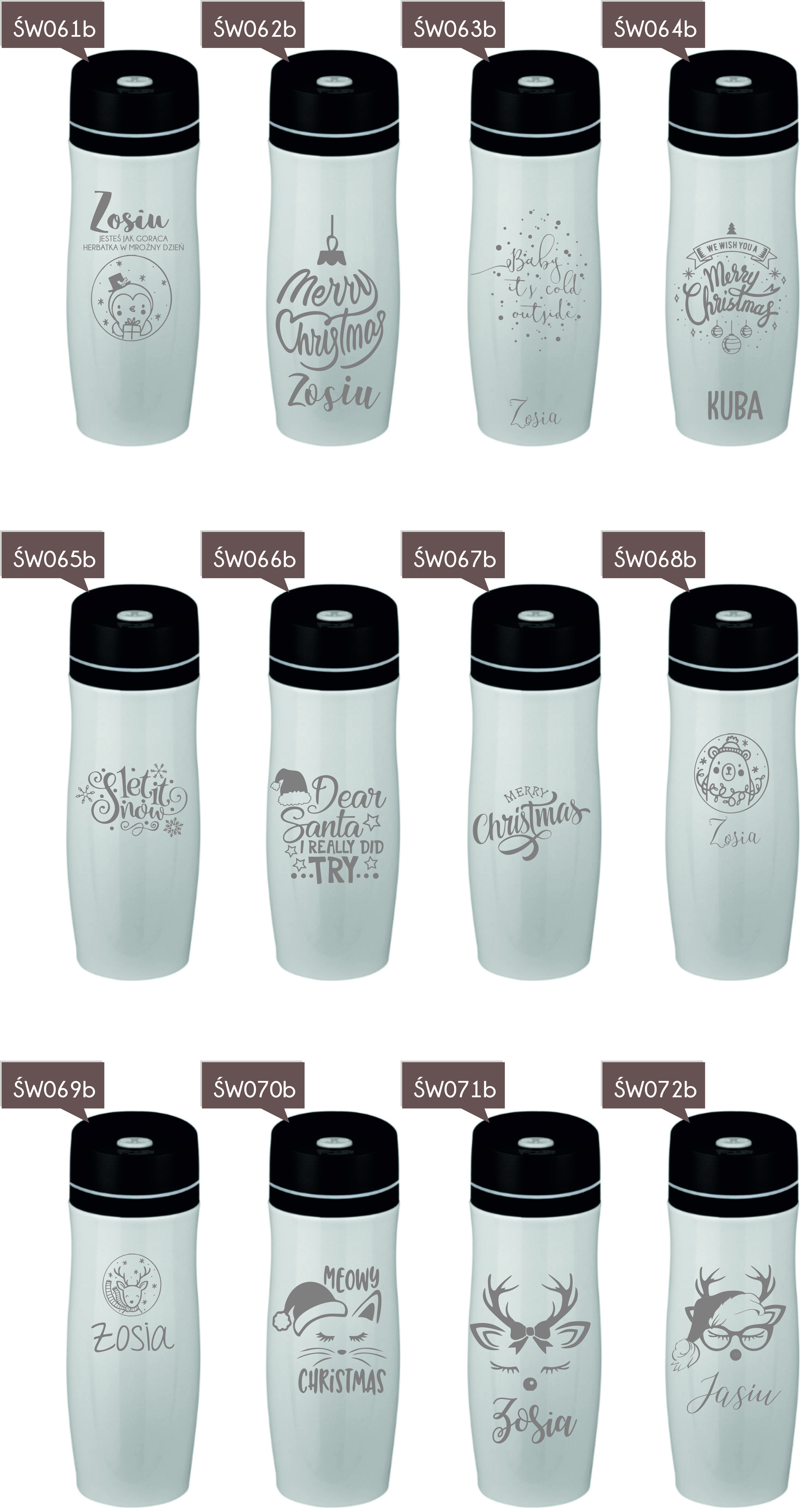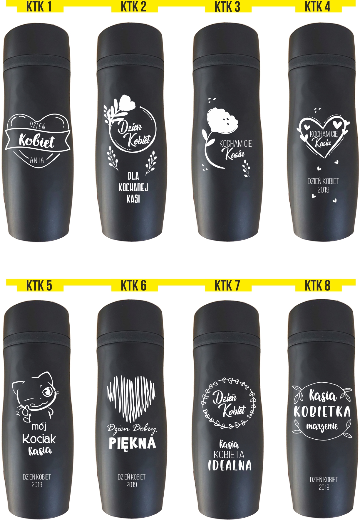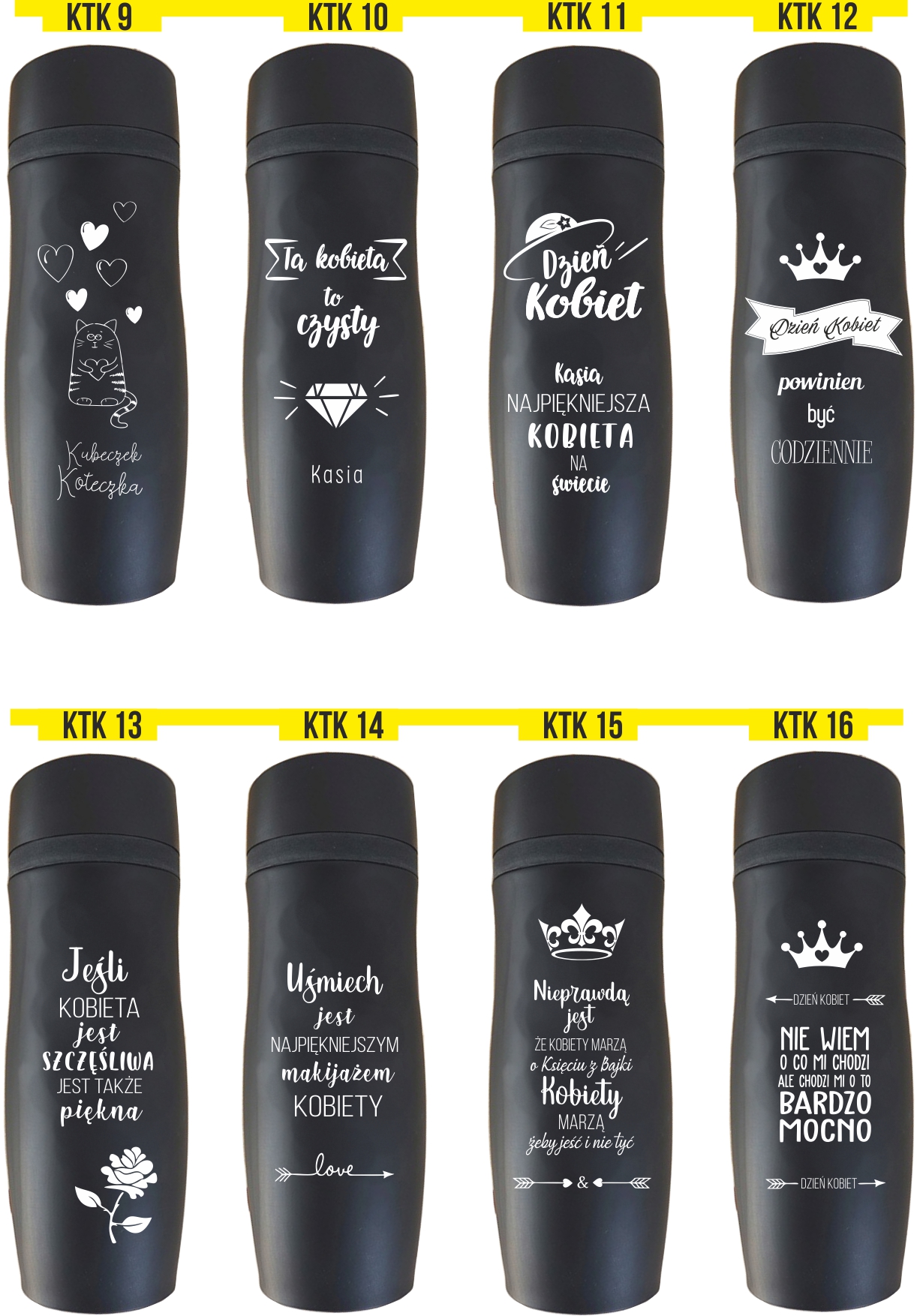 Przykładowe wzory kubków z grawerem: