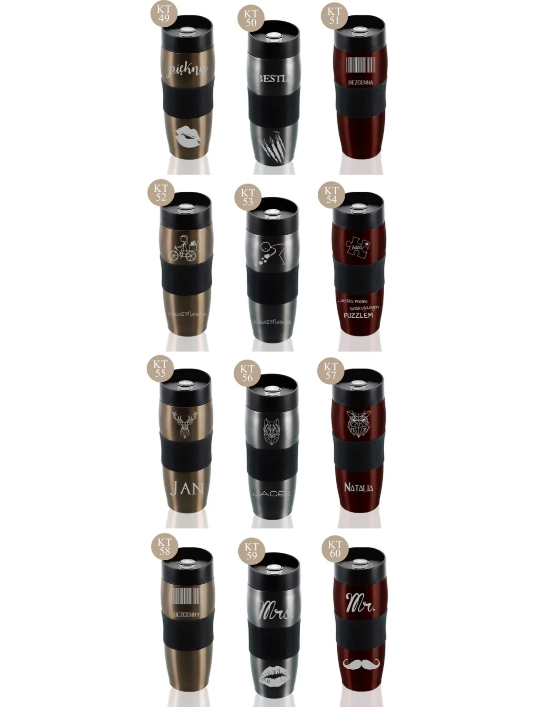 Przykładowe wzory kubków z grawerem: