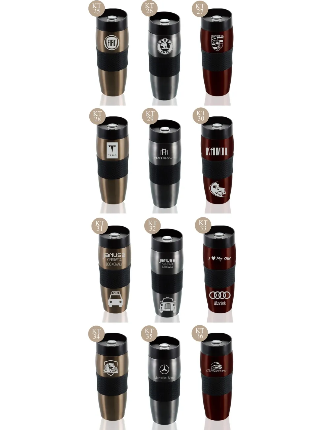 Przykładowe wzory kubków z grawerem: