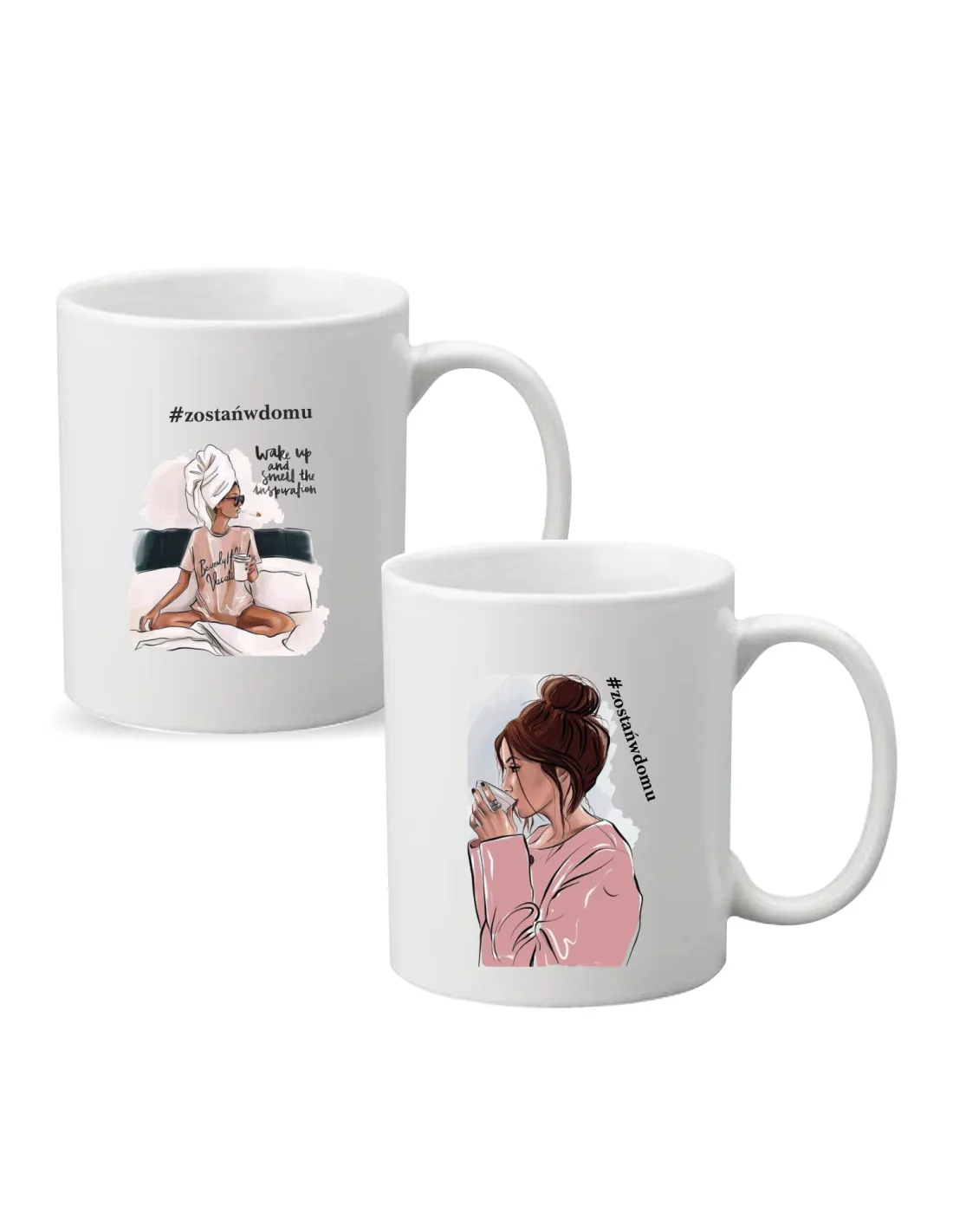 Kubek z nadrukiem napis PREZENT ZOSTAŃ W DOMU dla kobiety przyjaciółki