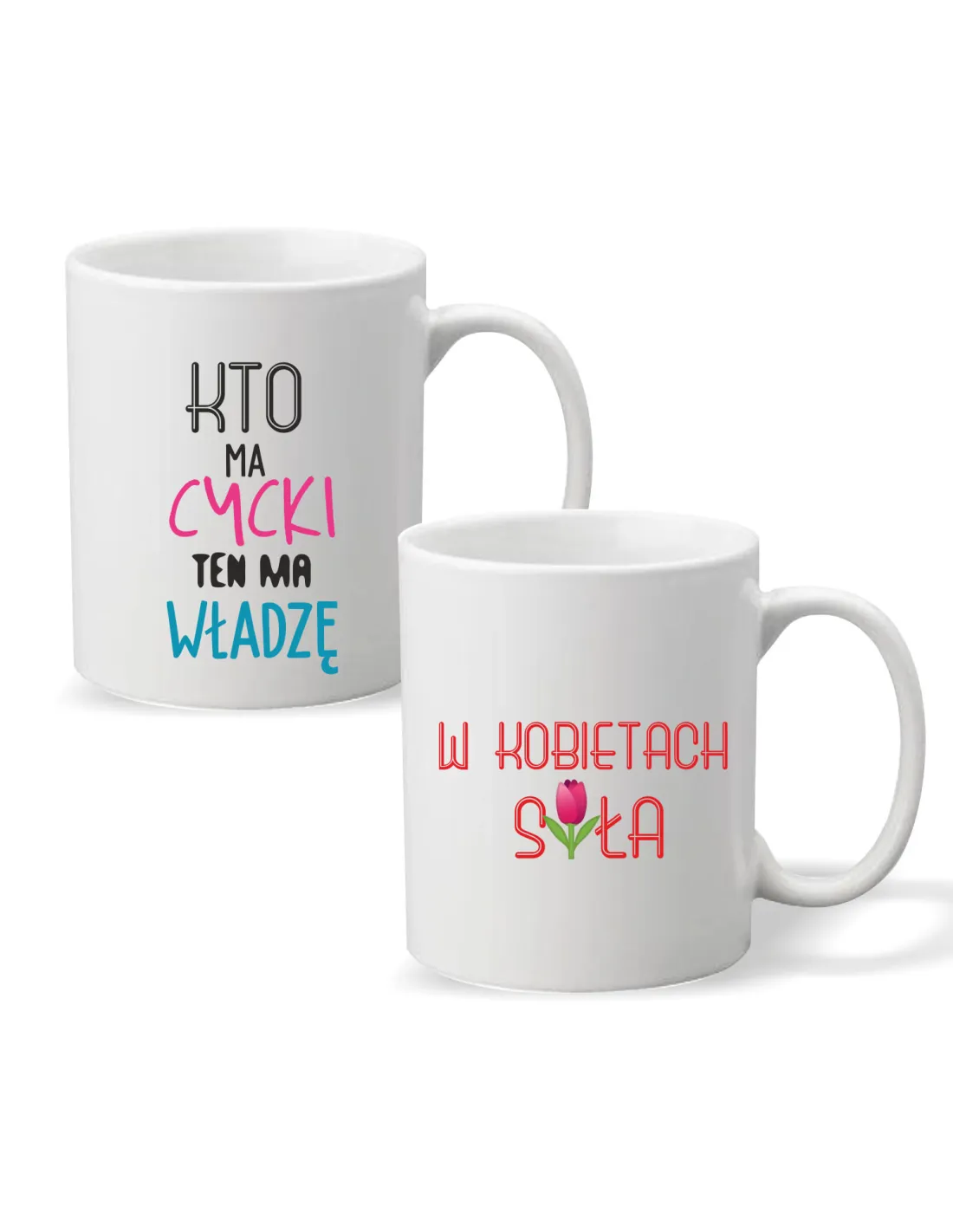 Kubek z nadrukiem KTO MA CYCKI TEN MA WŁADZĘ