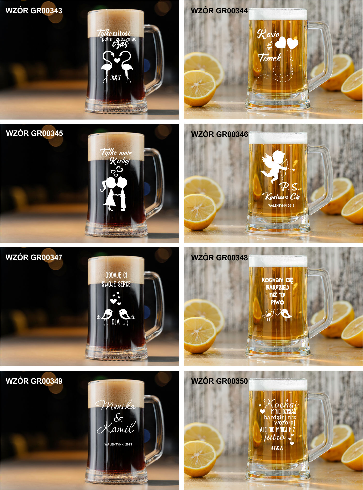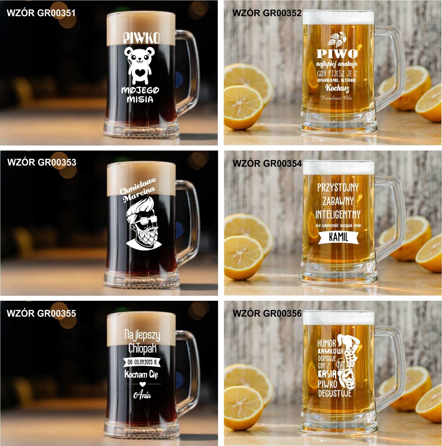 Przykładowe wzory kufli z grawerem: