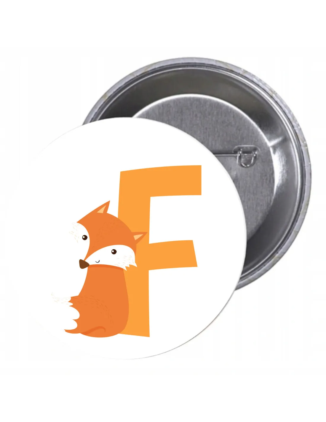 Przypinki buttony LITERKI DLA DZIECI - F znaczki badziki z grafiką
